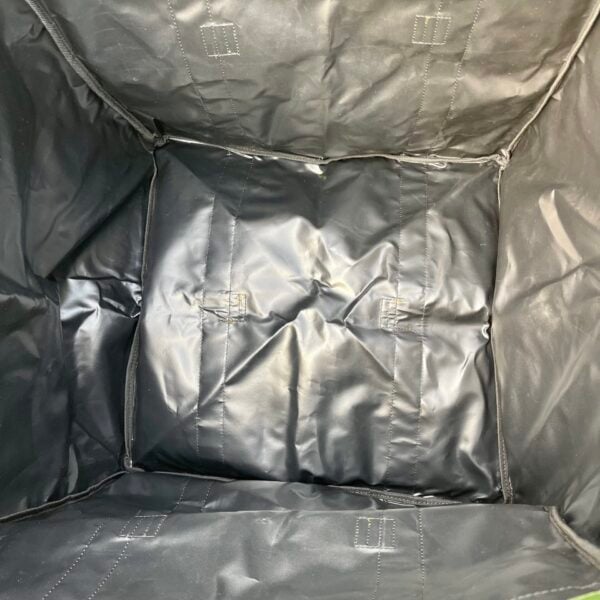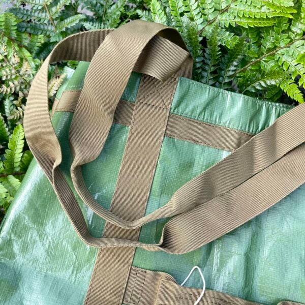 Handles on the top for lighter loads and grab handles on the sides for when you’ve overdone it and the need to drag arises. There’s even a handle on the underside to help you shake out the last bits or hang it up dry.