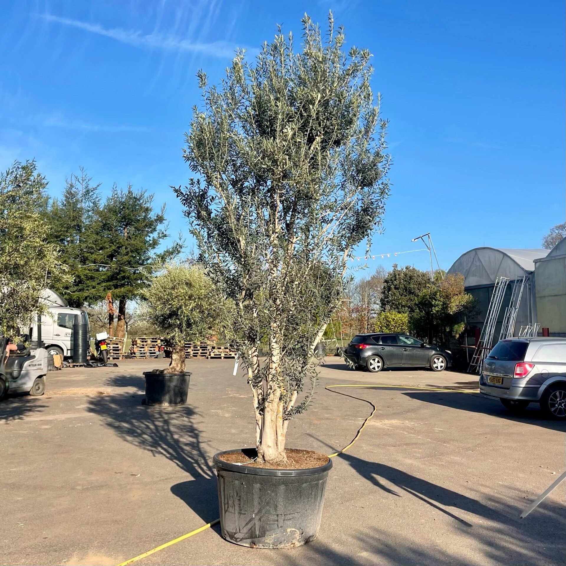 People really like Olive trees but we've steadfastly continued to put red labels on them until now. We don't do it very often but in March 2022 we reclassified the Olive to an Amber label (is this a promotion or a demotion we're not sure) the bigger they are, the tougher they are and as long as they're in the ground (where they belong), they'd probably survive a severe winter although they'd lose most of their leaves until new ones appeared in the spring. They might not be very resistant to frost but they're certainly tough. Most trees grown in the ground have their roots prepared over a period of many years to be lifted and moved. Without that preparation, they won't survive but these big Olives are dug straight out of redundant groves with a digger, bunged in an enormous pot and seem to carry on as if nothing had happened. A remarkable tribute to the toughness of this plant.