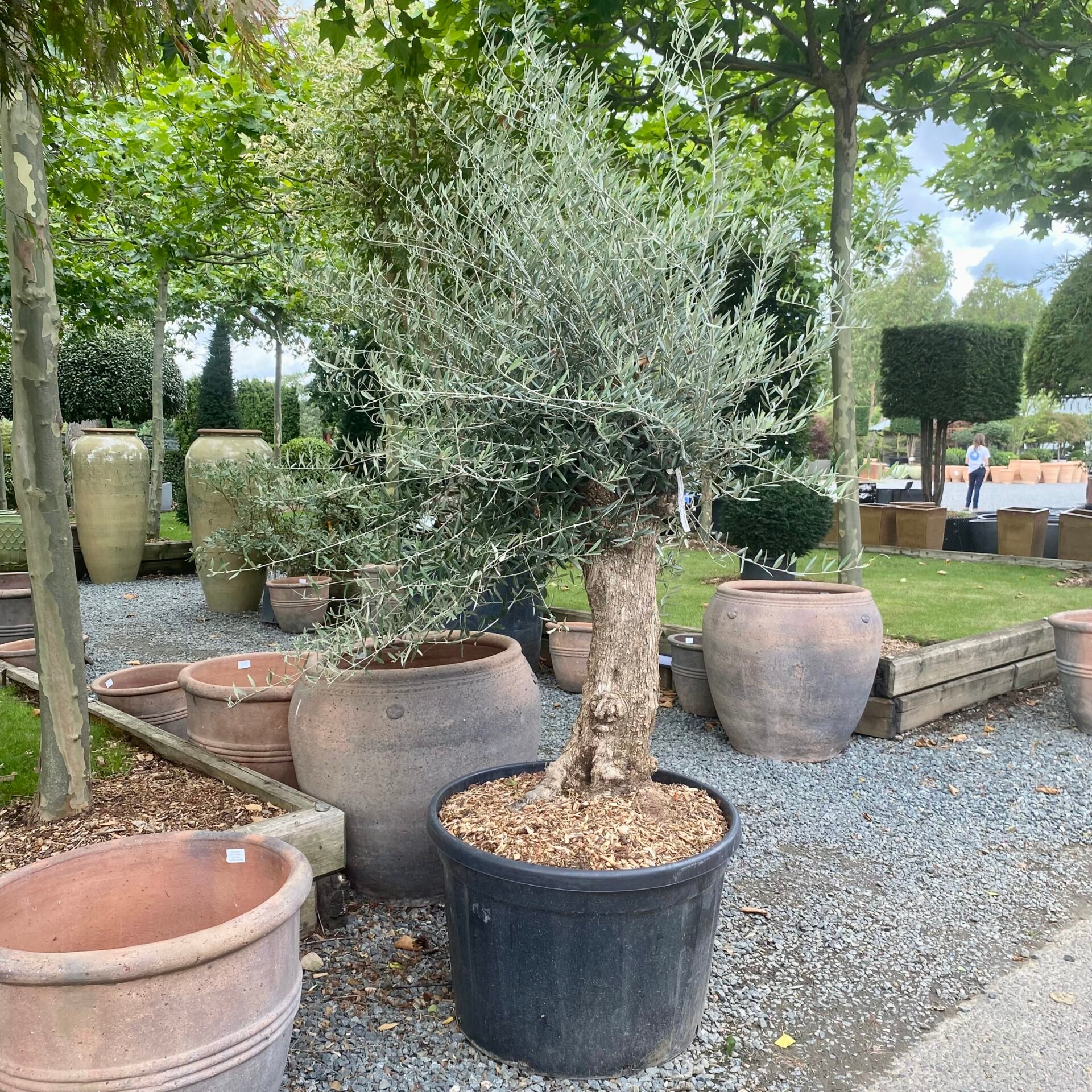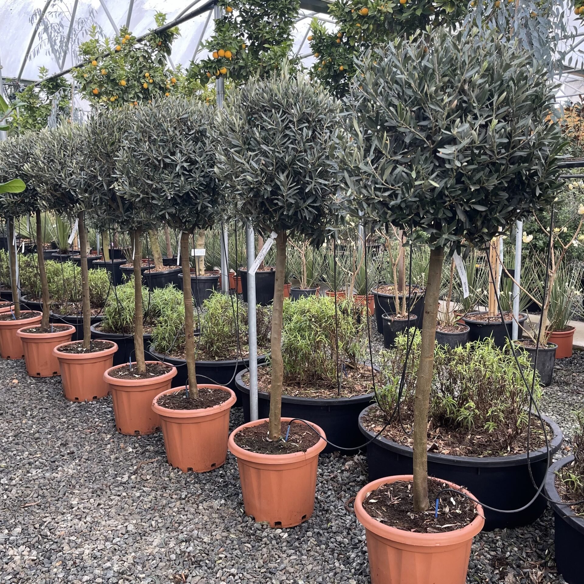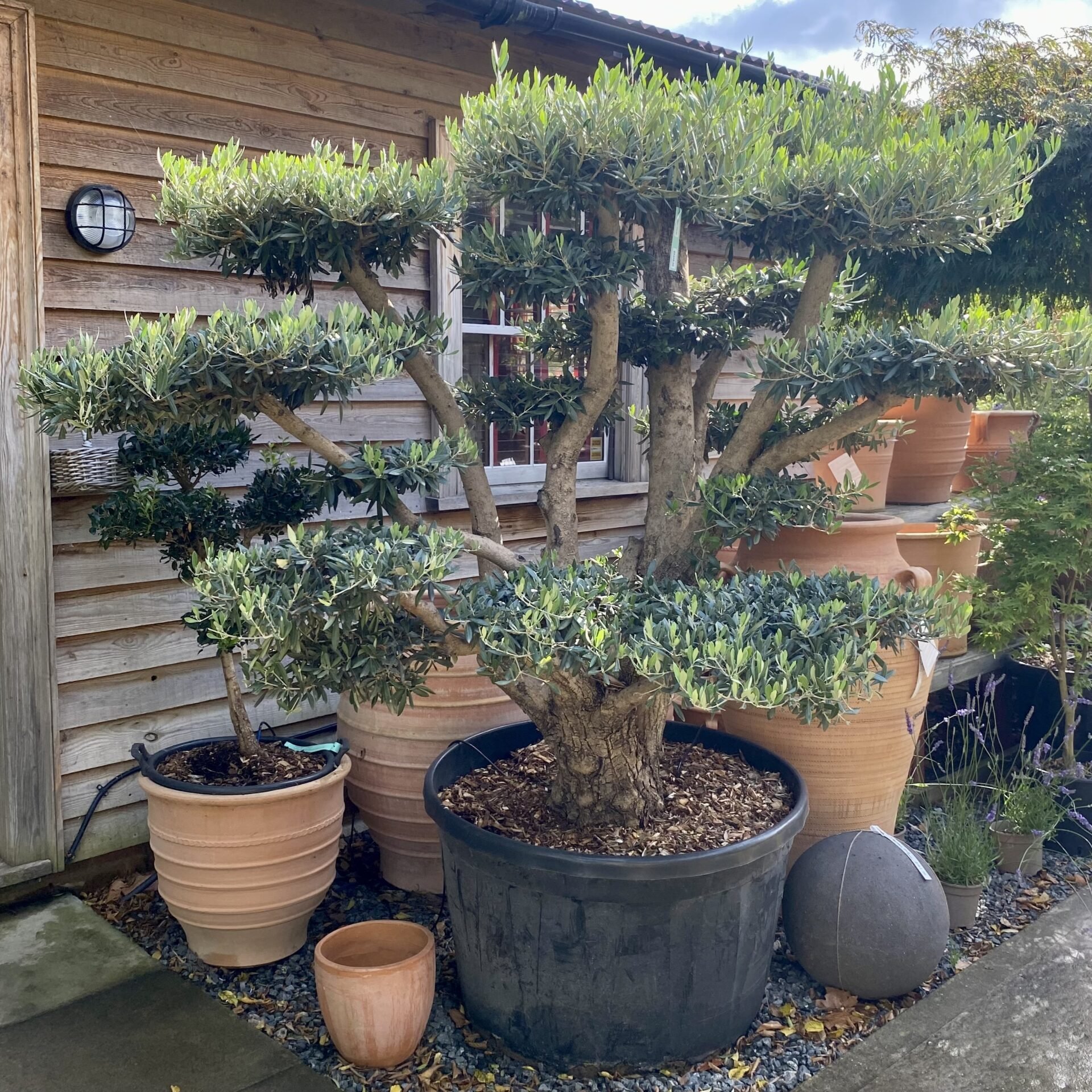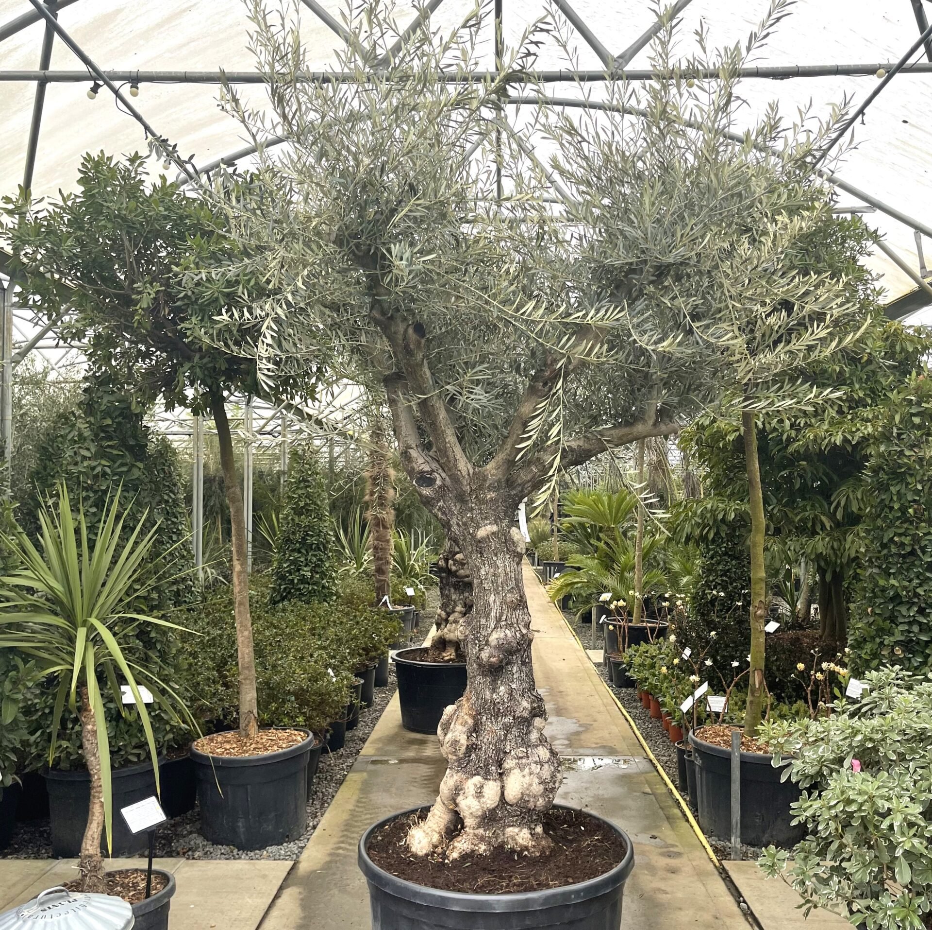 People really like Olive trees but we've steadfastly continued to put red labels on them until now. We don't do it very often but in March 2022 we reclassified the Olive to an Amber label (is this a promotion or a demotion we're not sure) the bigger they are, the tougher they are and as long as they're in the ground (where they belong), they'd probably survive a severe winter although they'd lose most of their leaves until new ones appeared in the spring. They might not be very resistant to frost but they're certainly tough. Most trees grown in the ground have their roots prepared over a period of many years to be lifted and moved. Without that preparation, they won't survive but these big Olives are dug straight out of redundant groves with a digger, bunged in an enormous pot and seem to carry on as if nothing had happened. A remarkable tribute to the toughness of this plant.
