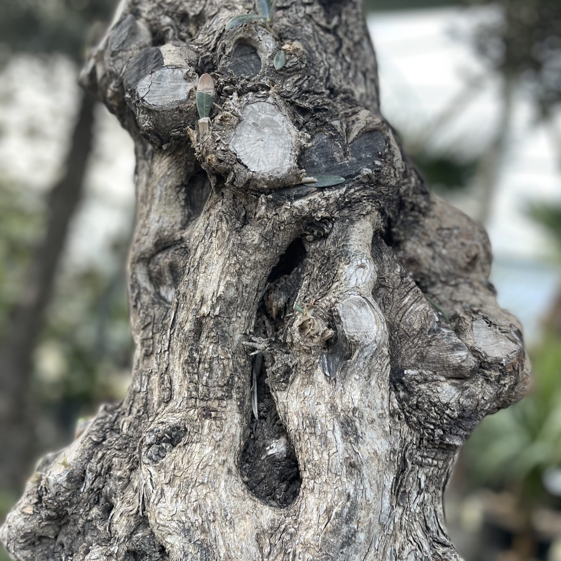 Olives are invariably grown in Mediterranean climates throughout the world as fruit trees and therefore they always have their branches cut off to keep them low so the fruit can be reached. I once came across a wood of 80ft tall grey trees swaying in the wind in a long abandoned ranch in California. I'm the tree man and everyone looked to me for identification of these things. I was embarrassed at my ignorance until I remembered that I'd been told that the ranch had been abandoned in the 1940s and what were they likely to grow on a ranch in California? Olives. Huge and completely unrecognisable. This tree - I think - has the remarkable distinction of being the only tree in the world that is only recognisable IF it's had most of its branches cut off.