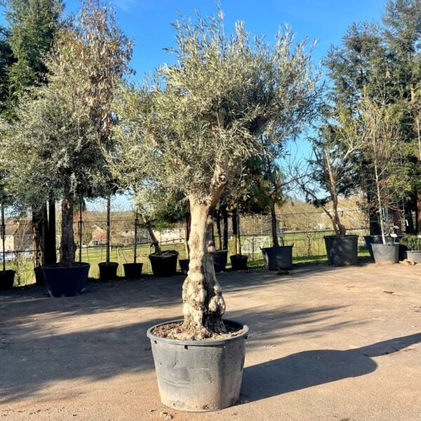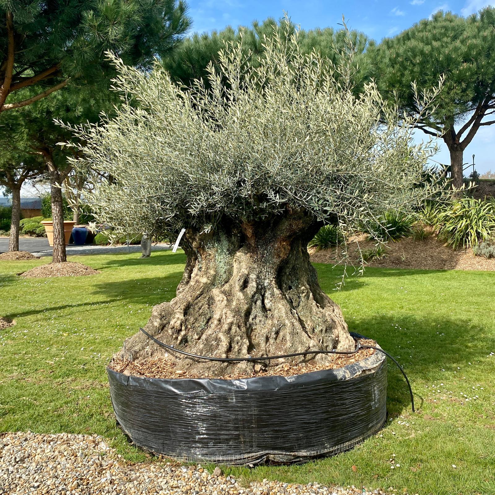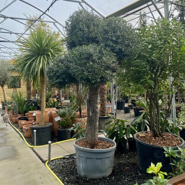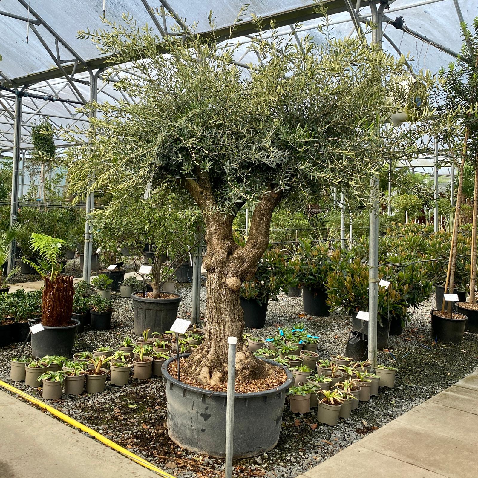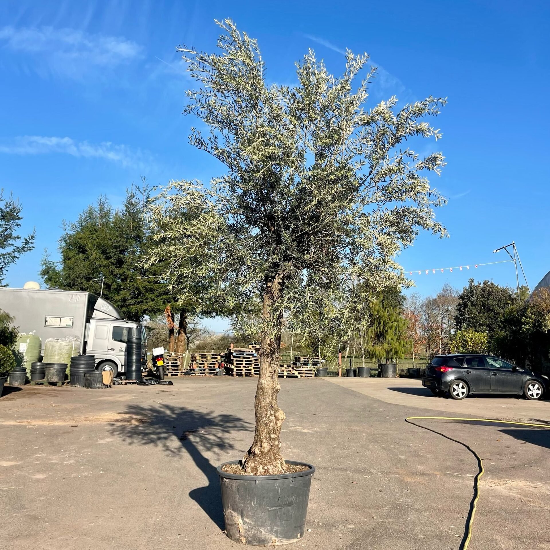 People really like Olive trees but we've steadfastly continued to put red labels on them until now. We don't do it very often but in March 2022 we reclassified the Olive to an Amber label (is this a promotion or a demotion we're not sure) the bigger they are, the tougher they are and as long as they're in the ground (where they belong), they'd probably survive a severe winter although they'd lose most of their leaves until new ones appeared in the spring. They might not be very resistant to frost but they're certainly tough. Most trees grown in the ground have their roots prepared over a period of many years to be lifted and moved. Without that preparation, they won't survive but these big Olives are dug straight out of redundant groves with a digger, bunged in an enormous pot and seem to carry on as if nothing had happened. A remarkable tribute to the toughness of this plant.