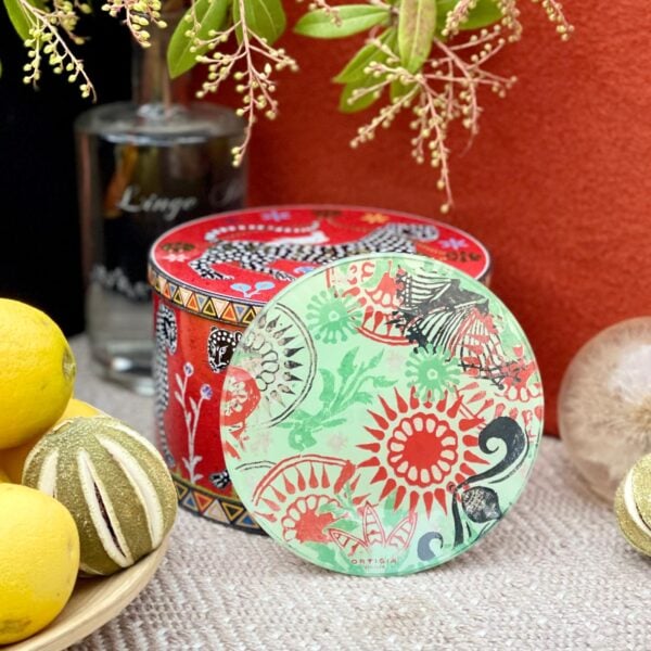 Ortigia’s Sicilia Tin & 5 Round Glass Plates. 5 alluring and bold glass plates contained within an impeccably designed tin. Handmade with unique illustrations: Fico, Florio, Melograno, Sandalo & Zagara. Tin size: W: 15cm x D: 10cm. Plate size: D: 13cm.