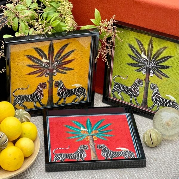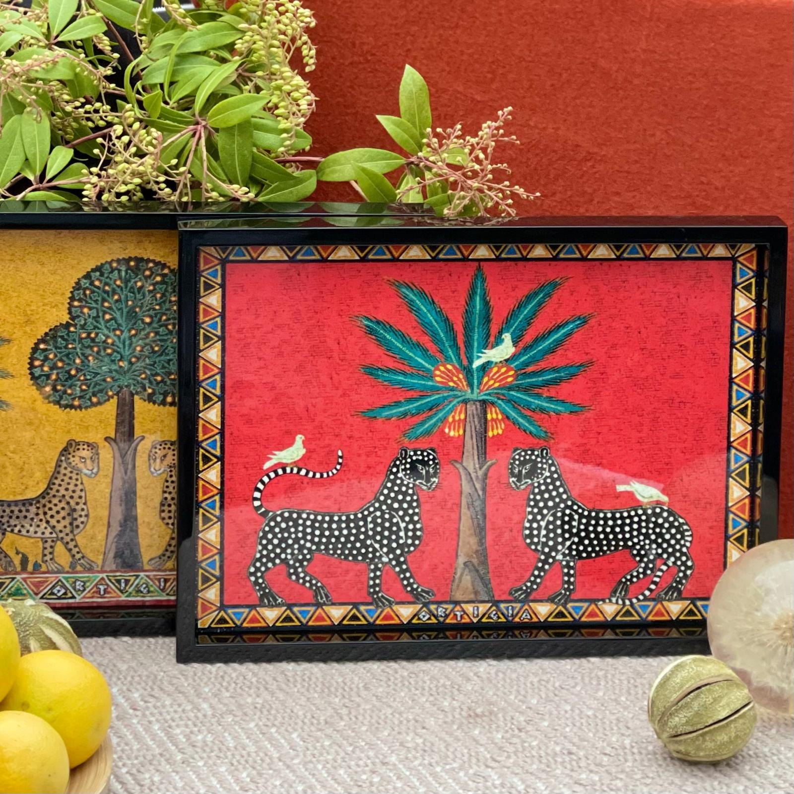 Indulge in the bold colours and lavish design aesthetics of Ortigia’s handmade lacquered trays. Perfect for serving tea, drinks, or something deliciously sweet. Available in 3 sizes and a range of colours with subtle alterations to each design making them really quite unique.