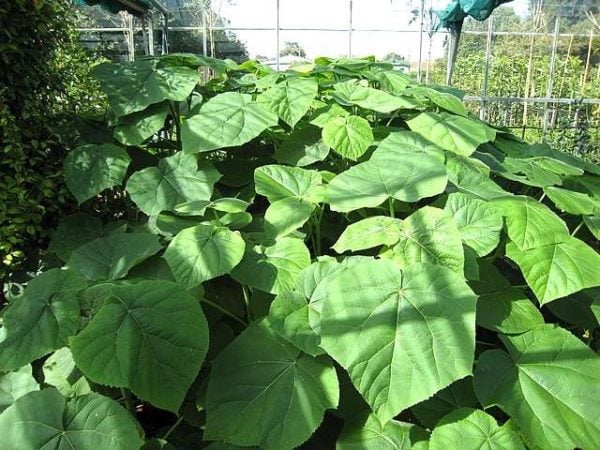 As a tree, it needs space and some shelter from strong winds; the leaves are nowhere near as big on an adult tree as in the Giant Vegetable Trick but they're biggish and very soft. They have a reputation for not flowering until they're about 15 years old which is odd because we find they flower on the nursery at about 3 or 4 years old. They obviously haven't read the books.