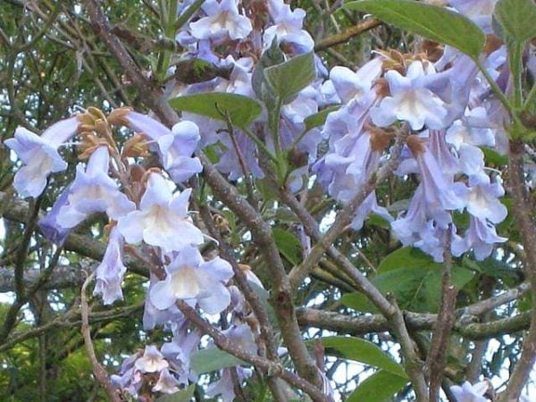 A fast growing deciduous exotic from China and Japan noted for its enormous soft leaves and copious quantities of purple foxglove-like and delicately scented flowers in April. Never thought I'd ever use an expression like 'delicately scented flowers'.