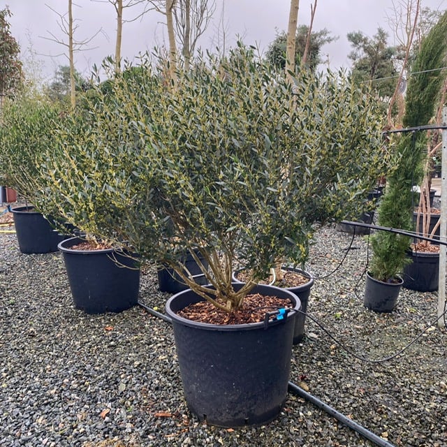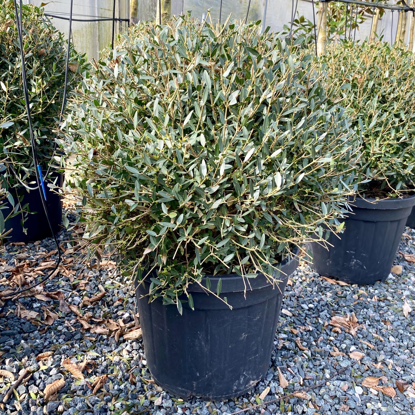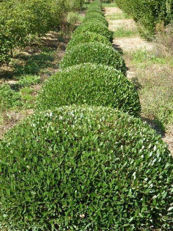 Tough as old boots - related to both Olives and Privet. Left to its own devices, an undistinguished evergreen shrub but its toughness and reliability lends it to being used as topiary - producing a lovely texture when clipped.
