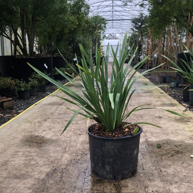 Greener, laxer and more luxuriant looking than the better known Phormium tenax. Lush and jungly. Yellow flowers on 5 ft spikes. to 5ft tall x 5ft wide.