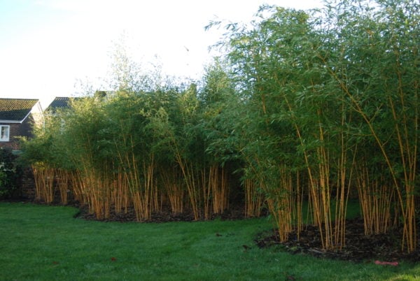 Requirements of all bamboos: Like all grasses, Bamboos need a reasonable amount of light, plenty of water, plenty of nitrogen (we use 'Blood, Fish and Bone' fertilizer) and will always do best when they have little to compete with - particularly grass. Best way to deal with that is dig a clearly defined bed around the plant, mulch it and keep it well weeded. An abundant water supply is the most important of these requirements and we usually advise customers to install an irrigation system if they're planting large quantities - especially if they're on very well drained soil (chalk or sand for example). Ask us for details about irrigation.