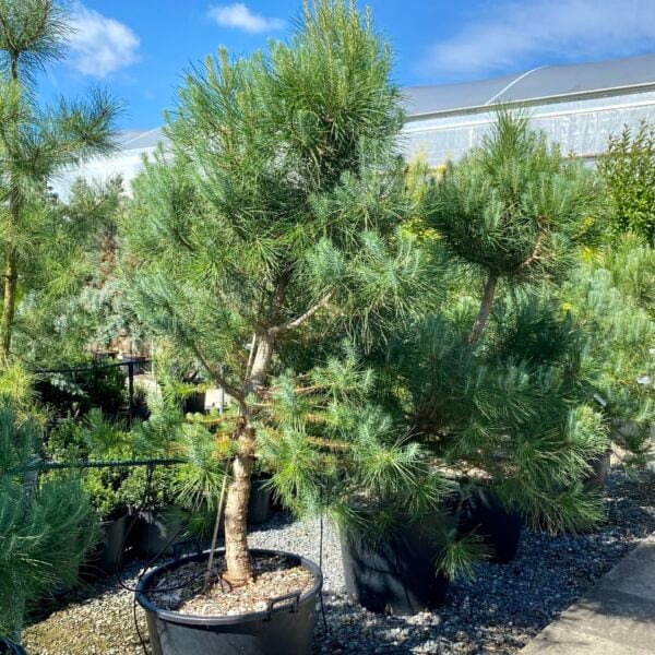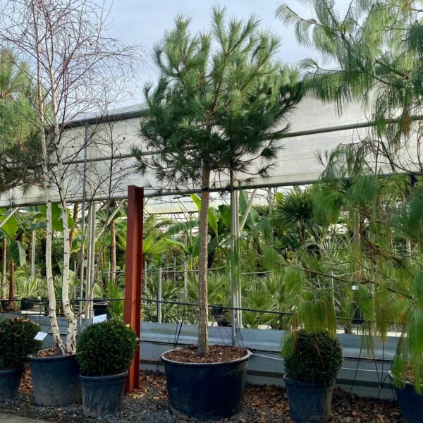 Pinus pinea is a hardy tree. Suitable for coastal, exposed (to wind and sun), mild city, seaside, and sheltered gardens. Plant in almost any reasonably well drained soil: Clay, dry sandy, shingle or even beach. Plant high, exposing as much of the taper at the base of the trunk as possible. Allowing soil to accumulate around the base of a tree can be fatal. Keep very well-watered when first planted. As it grows, cutting off the lower branches under the crown of the head will keep it looking at its Mediterranean best.