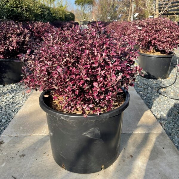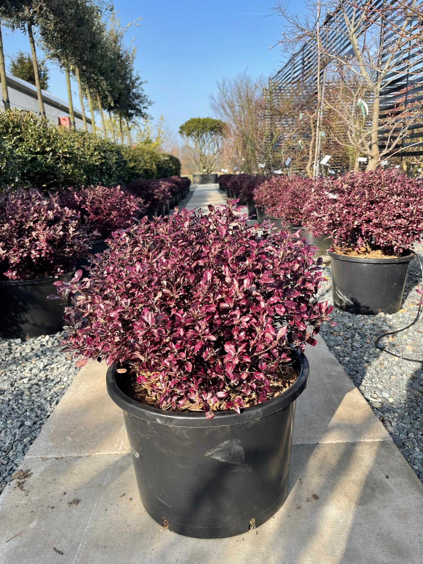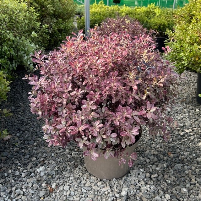 Forming a dense mound foliage to 100 x 80 cm's over 10 years. It has beautiful grey-green, creamy edged foliage in the summer taking on pink hues in the autumn and becoming deep maroon in the winter after the frosts.