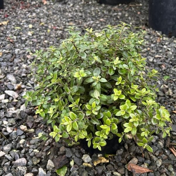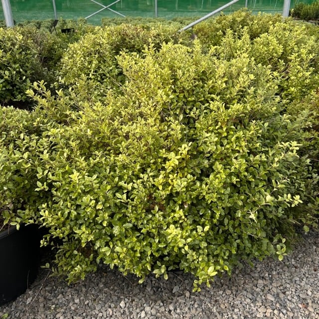 A round, compact form of this evergreen New Zealand shrub/small tree. 3ft x 3ft after 5 years. Clips beautifully.