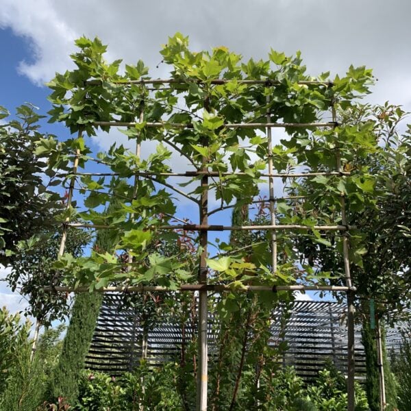 A huge and unbelievably tough deciduous tree that’s as happy in London as Malaga. We sell it trained with a flat top to create a formal matrix with a continental air. Please contact us for stock availability and sizes.