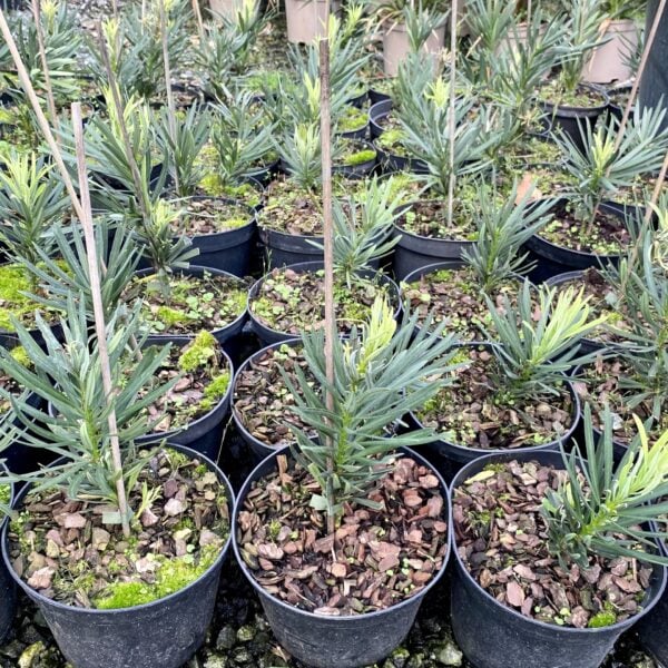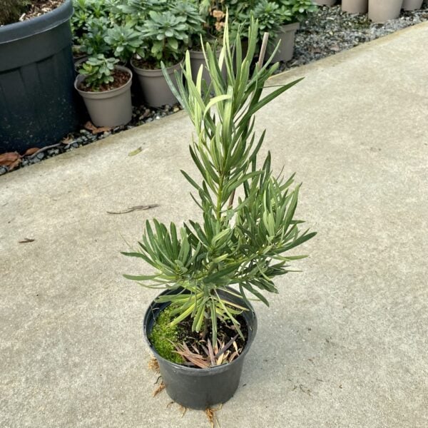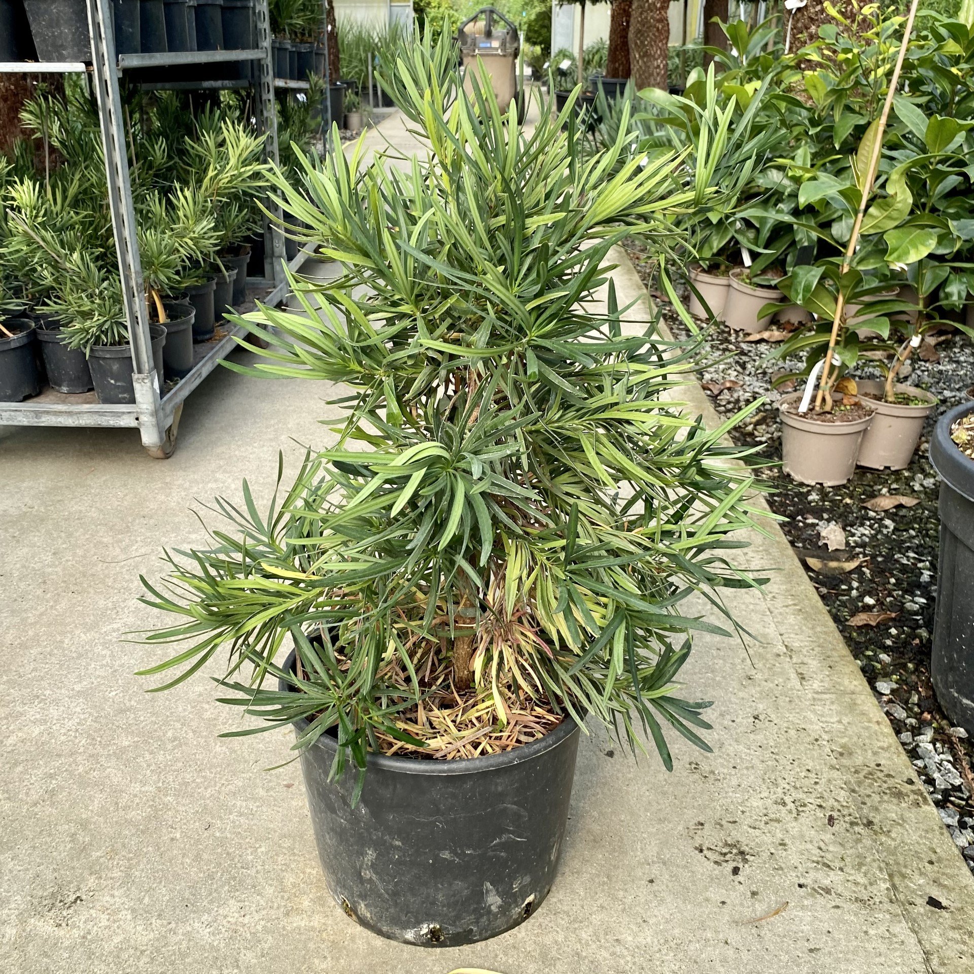 In Japan, the shorter leafed varieties are often used for creating Niwaki. We use the faster growing (in this country) Podocarpus salignus from Chile and Argentina. A similar tree but with much finer foliage.