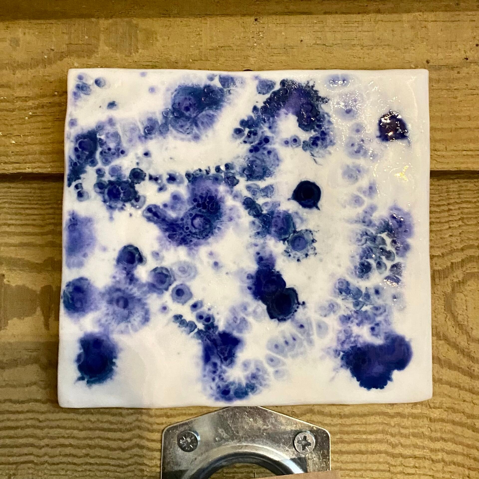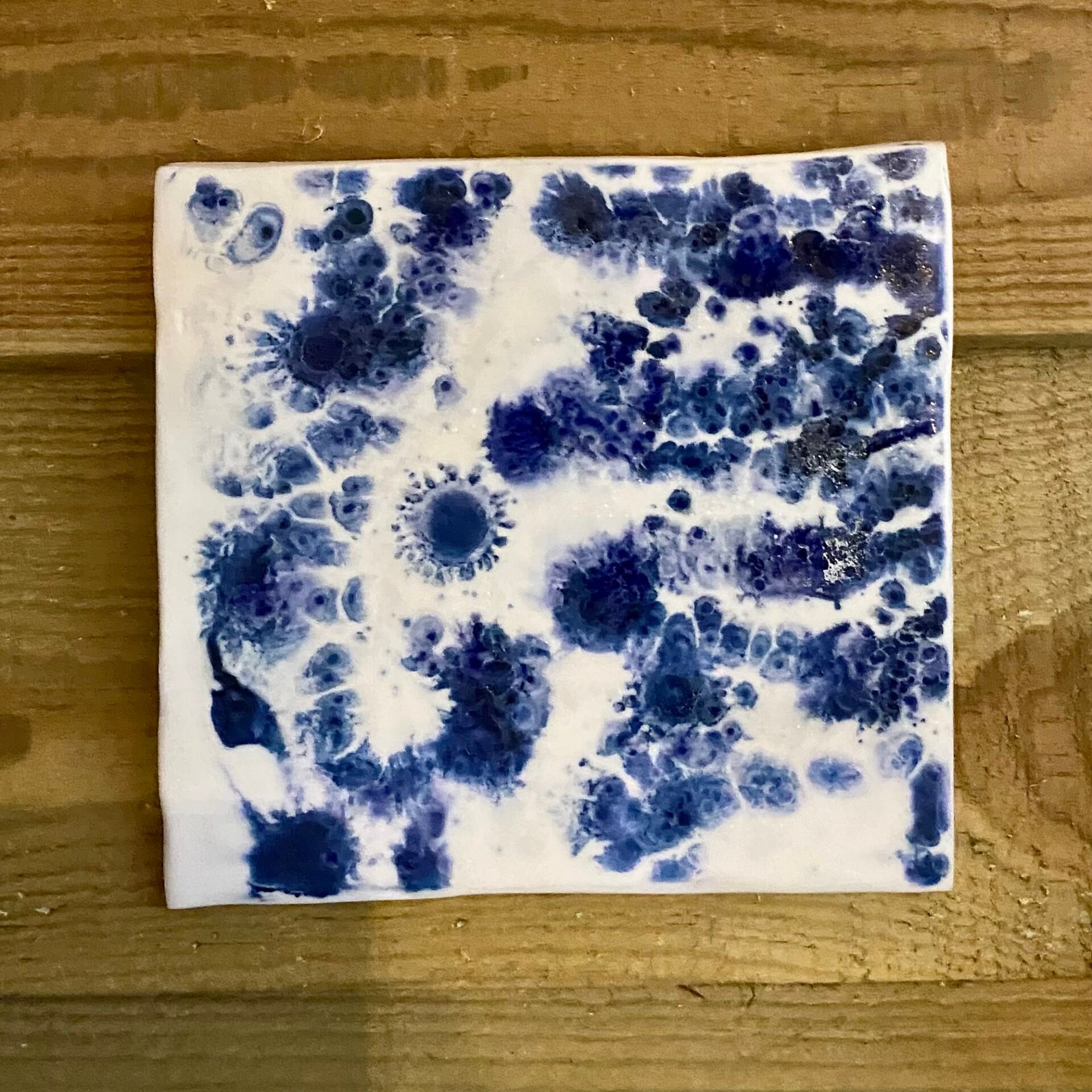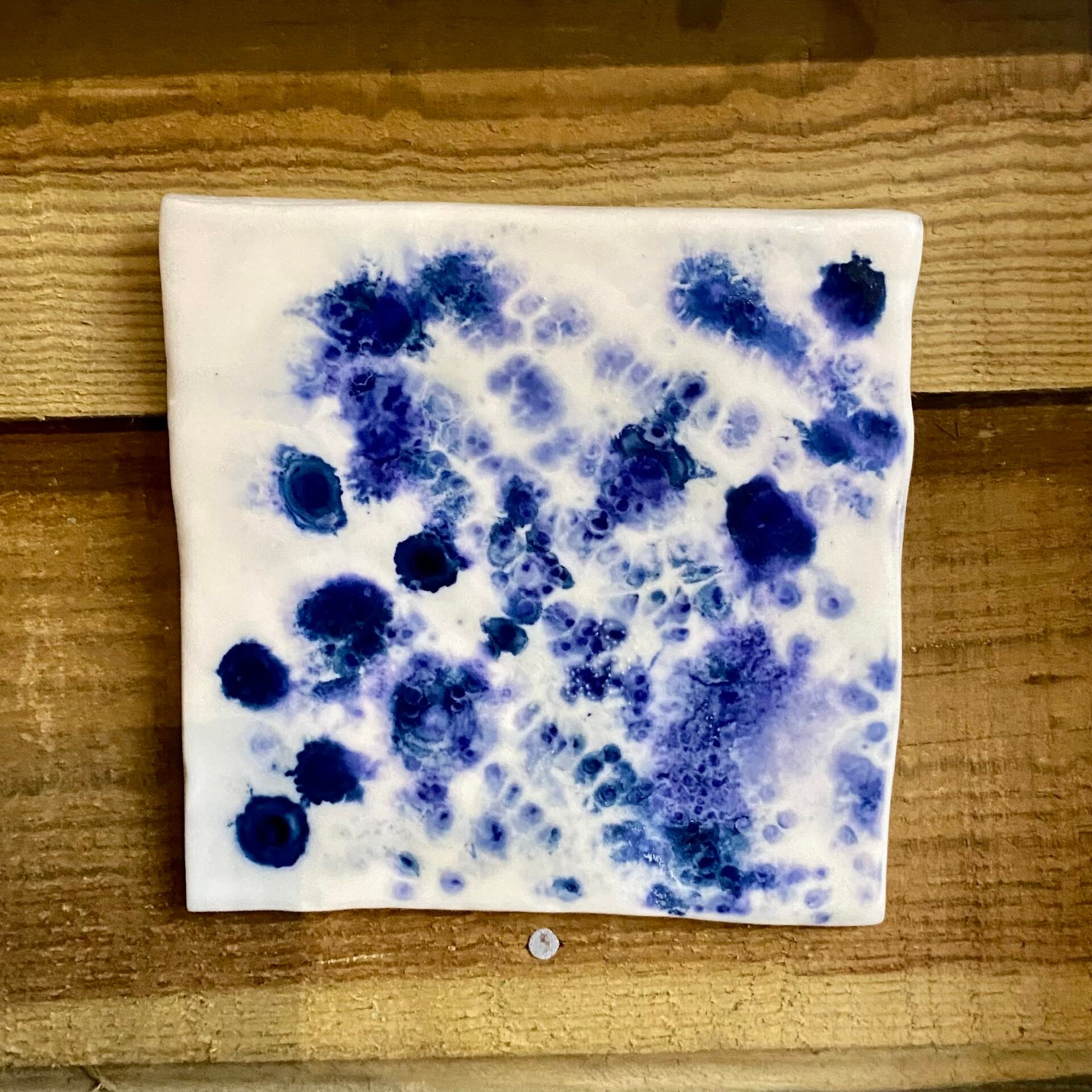 Each of these porcelain tiles are hand-sculpted and unique pieces of work. The porcelain is rolled and cut loosely as a square. Natural subtle undulations occur during the firing (such is the nature of porcelain in these conditions) which adds to their organic character.