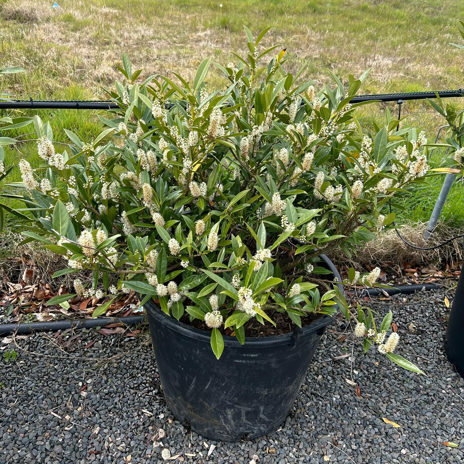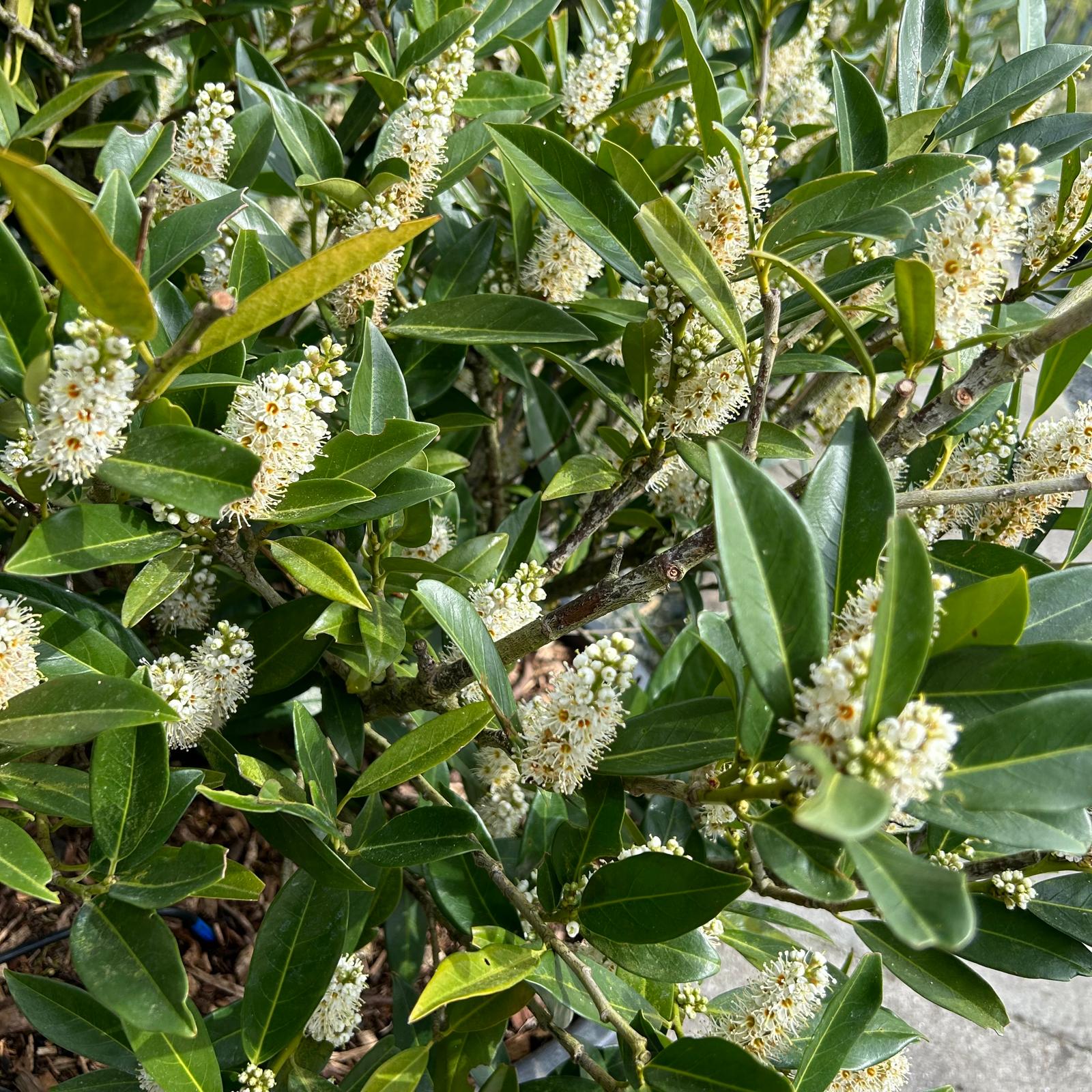 Hardy, evergreen and great for birds. This is a narrow-leaf version of the more well-known Cherry Laurel.