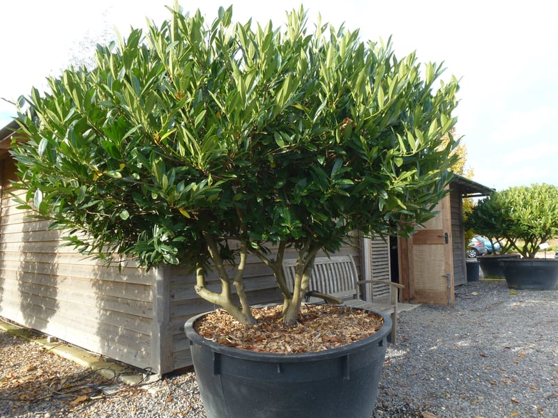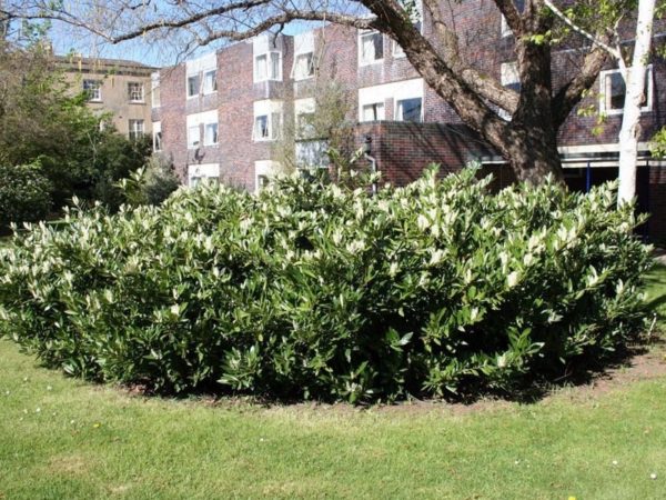 Hardy, evergreen and great for birds. This is a narrow-leaf version of the more well-known Cherry Laurel.