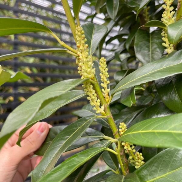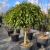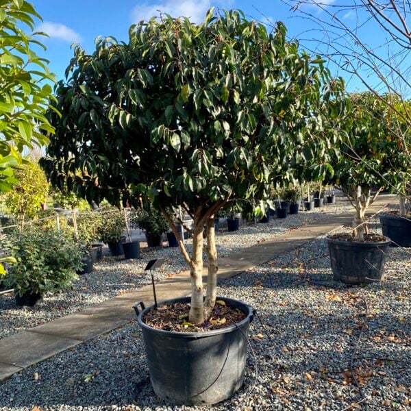 Very hardy evergreen shrub or small tree with glossy, dark green leaves and white fragrant flowers in summer, followed by black berries. Clip once or twice a year to maintain shape. Very easy to grow, sun or shade, any soil except a bog. May be grown in a large container if kept well clipped. Larger specimens need extra attention in the first year so please ask us for further details.