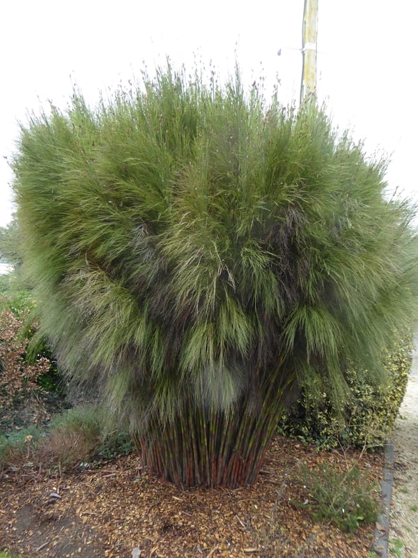 This is one of a group of related plants that are collectively known as the Restios from Cape Province in South Africa. Therefore they are definitely on the red-side of amber where their hardiness is concerned. Twenty years ago, briefly, they became trendy as was declared by the horticultural journos. We acquired 10 different species to experiment with and all but one died in their first winter in Sussex - but not this one which despite some pretty cold winters has flourished and never appears to have suffered any damage from cold winds or low temperatures. However, it's really about allowing this plant to flourish not just survive so you need to be particularly aware of your garden situation and the seasonal conditions that can affect it.