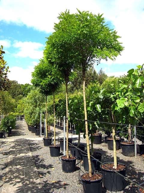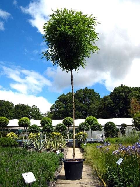 Compact form of the well-known Robinia. It forms a tight rounded head. A deciduous tree for a low maintenance, formal look. We have them planted as an avenue at the nursery. Please contact us for stock availability and sizes.