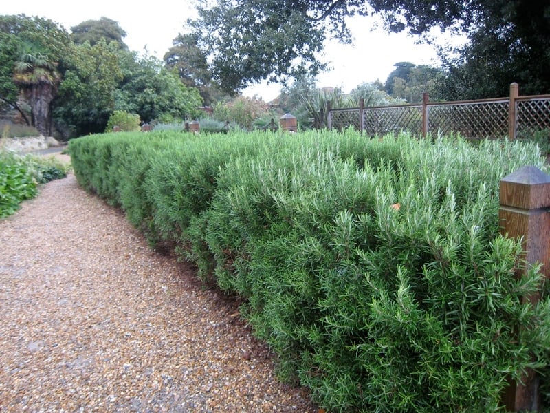 Also known as Salvia rosmarinus. It requires any well drained soil in full sun. It forms low arching branches, bearing blue rosemary flowers from about May onwards. Pinch the tips to keep it bushy and provide fresh herbs for the kitchen. If the plant does require pruning, it is better to do this little and often to avoid cutting into the old wood, which can sometimes cause dieback. It is an excellent coastal plant.