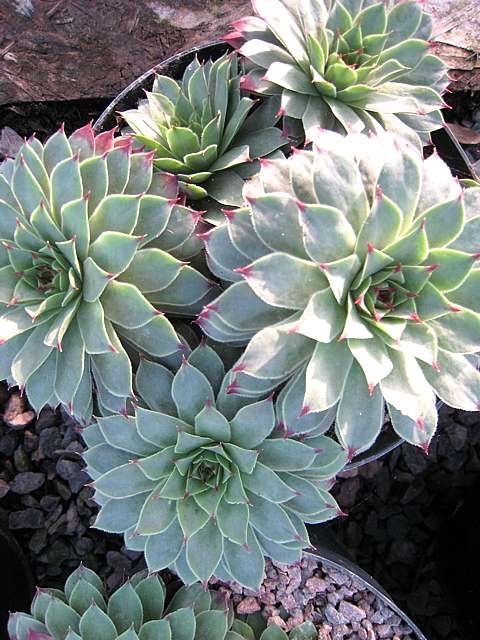 Familiar spiky little rosettes 0.4ft across. Grow these in profusion amongst your yuccas and other succulents. Or even on your roof. Tremendously tough and satisfying. Please contact us for stock availability and sizes.