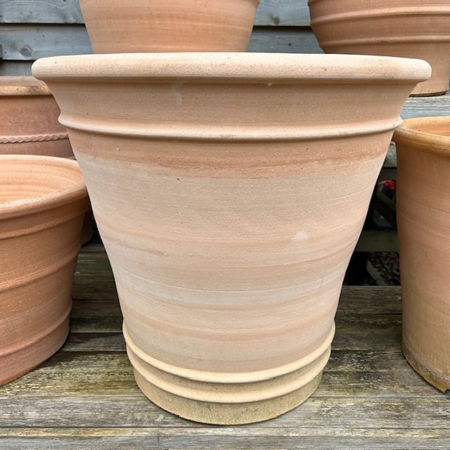 Behold the Sitia terracotta pot. A Cretan vessel that embodies timeless elegance and unparalleled craftsmanship. The ideal home for any topiarised or other sculptural plant that you want to show off. Don’t be constricted by purely Mediterranean choices - looks fantastic planted with yew balls, for example. Meticulously thrown by hand using traditional skills honed and passed down through the generations. Crafted from the finest terracotta for a cool protective, breathable environment for root growth. With a 50-year frost proof guarantee (down to minus 20 degrees centigrade) it’s set for a long life. Best stood on feet.