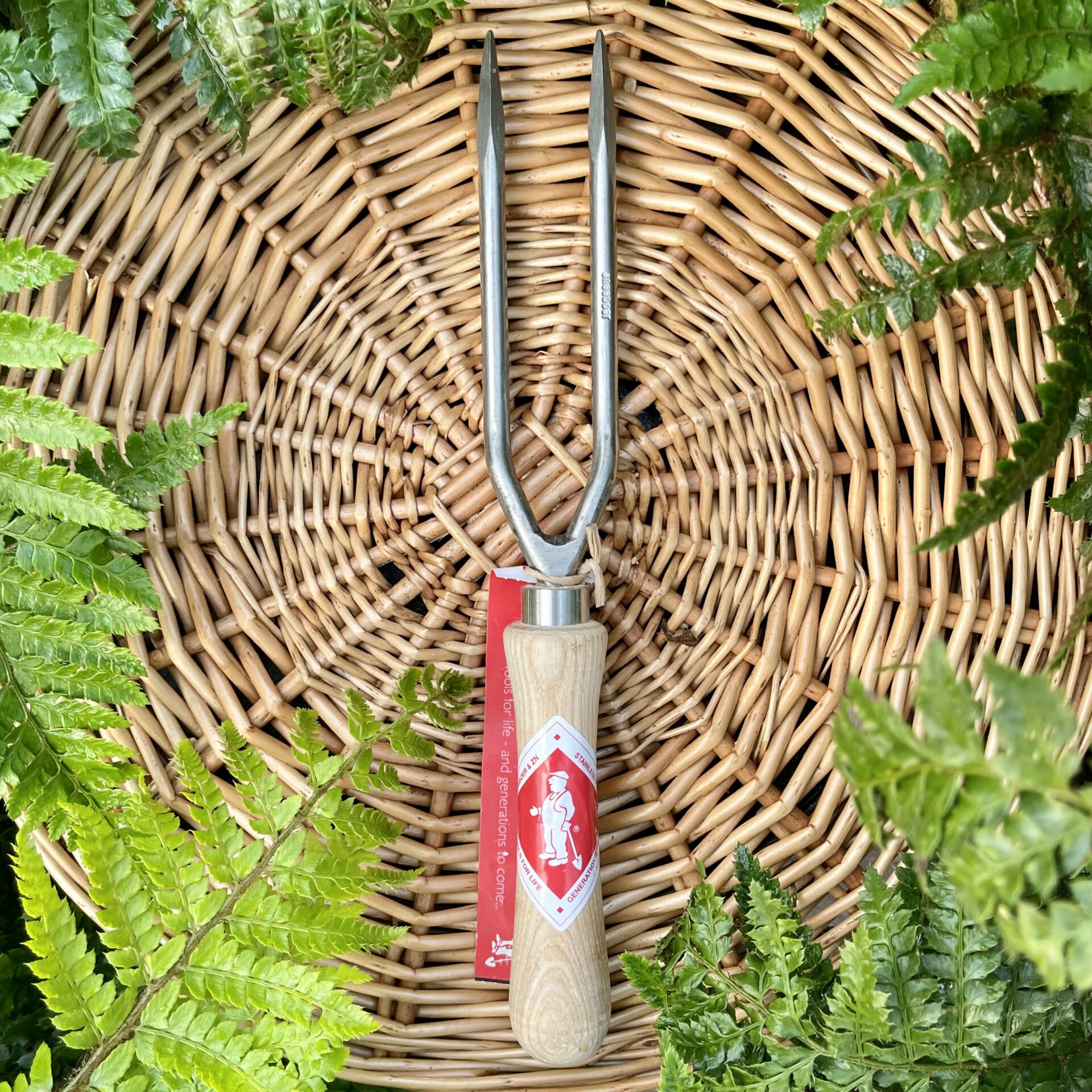 The two-pronged weeding fork loosens the earth around the roots, enabling the weeds and their roots to be removed with ease.