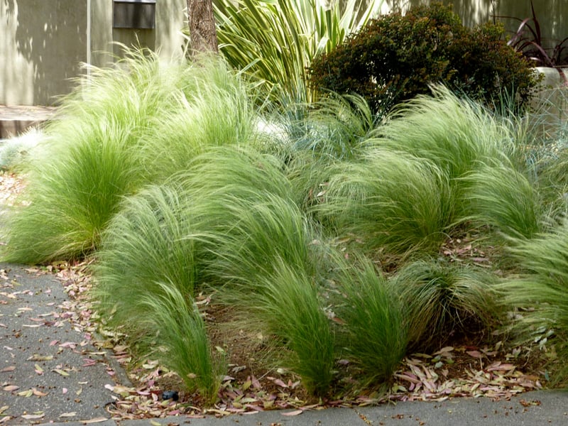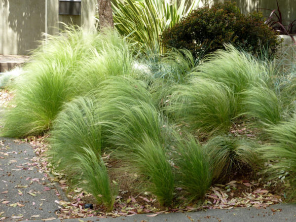 It really deserves to be grown en masse on fairly well drained soil with masses of light. Plant tenuissima in full sun and well-drained soil. Comb through in spring or early summer to remove any dead growth. It dies down in the winter (best to chop to the ground in late winter) and produces flowers that are as fine as its leaves and only a little bit higher. It’s comparatively short-lived and will last around 3-5 years. There’s no need to feed or mulch Stipa tenuissima – it does best in poorer soils. Stipa tenuissima is good for a coastal garden and also grows very well in pots as well.