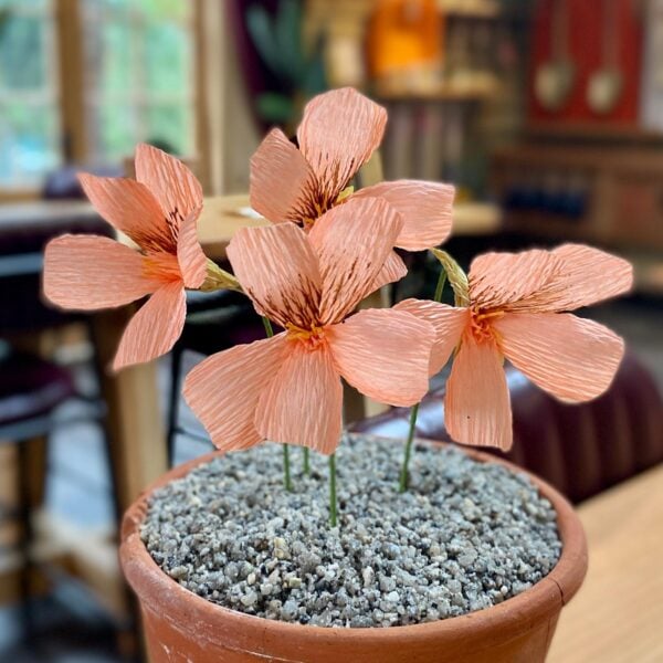 These delicate handcrafted flowers bring beauty to any space and whilst they require minimal upkeep, a bit of thoughtful care will keep them looking fresh and vibrant. Every flower is unique and varies slightly in size. Ask us for a care tip sheet.
