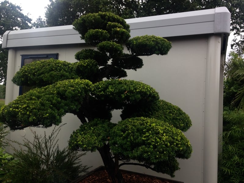 The Phillyrea latifolia are propagated by us from cutting from a tree that once stood in the garden of Sedgewick Park in West Sussex. Sadly, lost in the Burns Night storm of 1991. The Myrtus apiculata are propagated by us from cuttings from a tree growing in the grounds of South Lodge Hotel in West Sussex and the Podocarpus salignus are grown from seed from our own trees in Sussex which were grown originally from cuttings from a tree growing also in the grounds of what is now South Lodge Hotel. A tree of such exotic and immaculate beauty that its discovery was a seminal occasion in the genesis of Architectural Plants. The Niwaki from Japan (Taxus cuspidata and Ilex crenata) are often produced by trees being cut down, being dug out of the ground, replanted in the nursery and then trained into a Niwaki. It's quicker that way and it's the tradition in Japan - mostly because the tree will grow quicker if it has a large existing root on it.