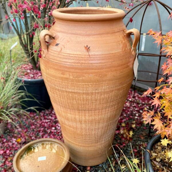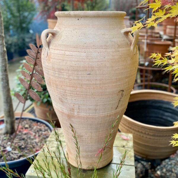 Hand made on the Island of Crete, using techniques and styles that have not changed for nearly 8,000 years. These frost proof pots make a fabulous, larger than life statement in any garden. All measurements are approximate as hand-made pieces may vary slightly. We also include a set of terracotta feet with each pot purchased.