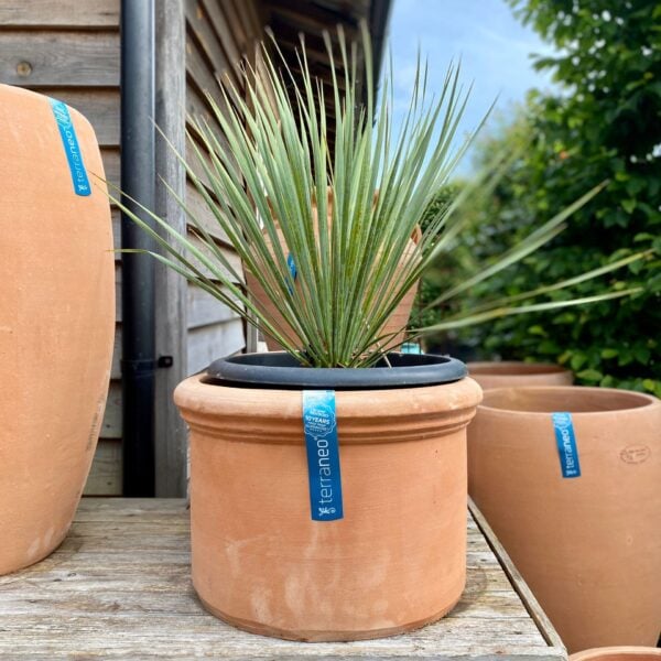 The Terraneo Carini Terracotta pots come in three generous sizes. There’s an elegance in simplicity done well, and these handmade Cretan pots are some of the best examples for your garden space. They have solid rims with a classical rolled profile and there’s a lovely subtle bevel detailing to the base that indicates their quality. Robust whilst in no way utilitarian, they look especially handsome when planted with arid things (we’ve used a Dasylirion).