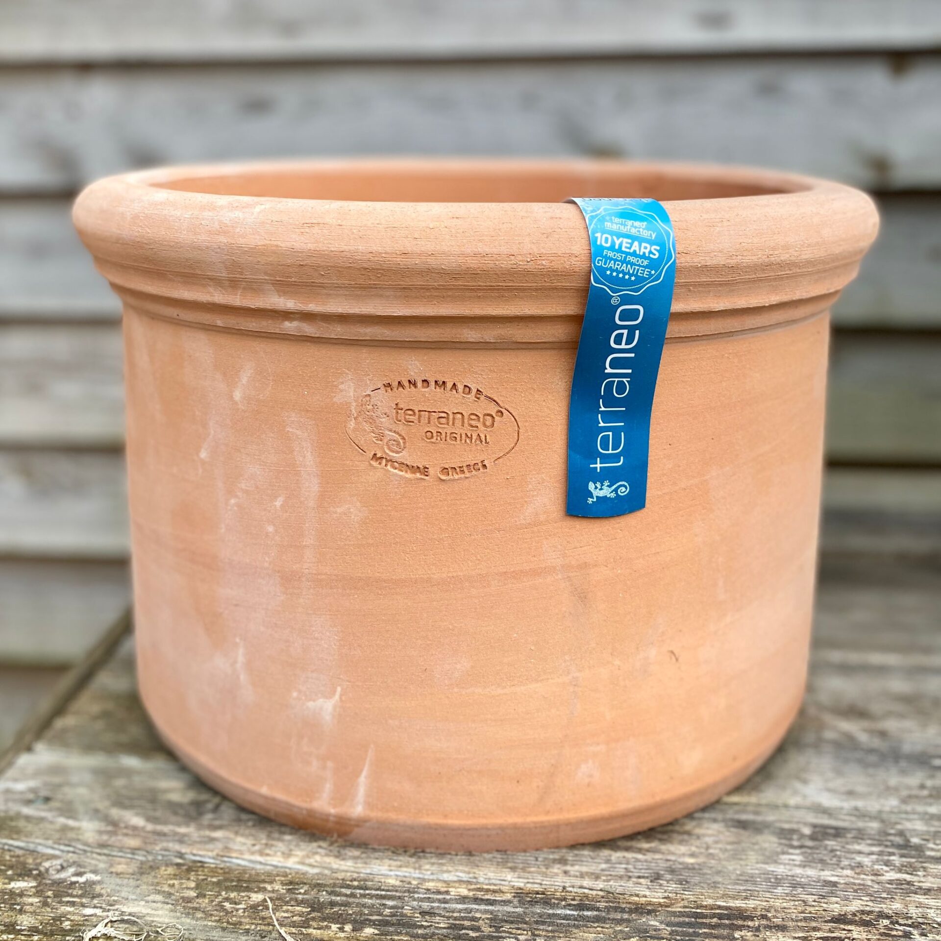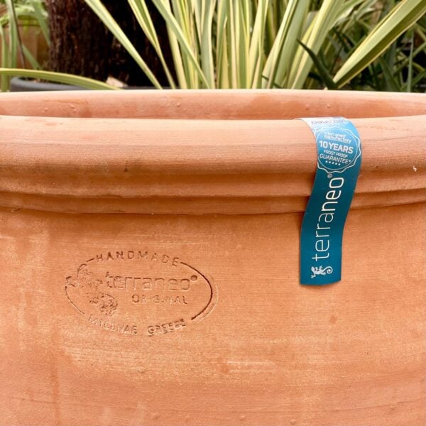 The Carini Terracotta Pot is handmade from superior-quality terracotta. The really top-notch stuff from the Peloponnese where they’ve been making pots for aeons (so they know their stuff).