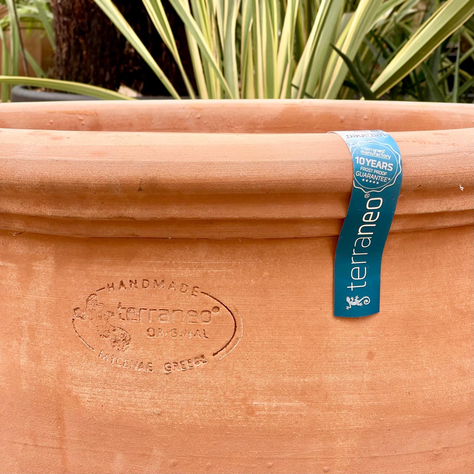 Crafted from Cretan superior terracotta, the ‘Carini’ is an individually handmade vessel from our exclusive Terraneo range. Made with the highest quality Pelopenessian clay for a lighter finish and great strength, this material has been relied upon for centuries to withstand bitter Greek winters. In fact, they’re certified to be frost-resistant up to -50º Celsius. As the sole distributor of these pots in the UK, we’ve curated a wide range of sizes and unique styles for your exclusive perusal.