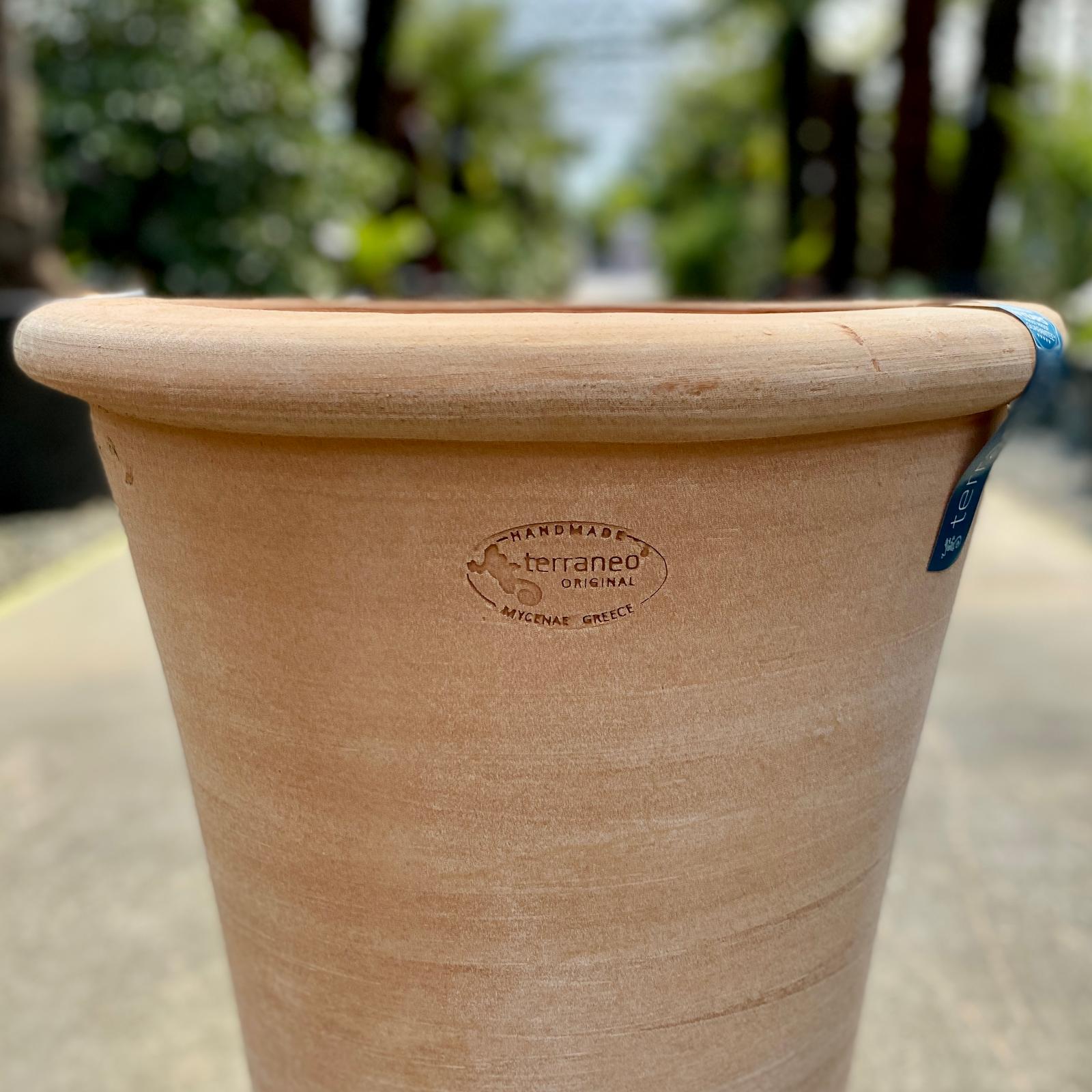 Crafted from Cretan superior terracotta, the ‘Fondi’ is an individually handmade vessel from our exclusive Terraneo range. Made with the highest quality Pelopenessian clay for a lighter finish and great strength, this material has been relied upon for centuries to withstand bitter Greek winters. In fact, they’re certified to be frost-resistant up to -50º Celsius. As the sole distributor of these pots in the UK, we’ve curated a wide range of sizes and unique styles for your exclusive perusal.