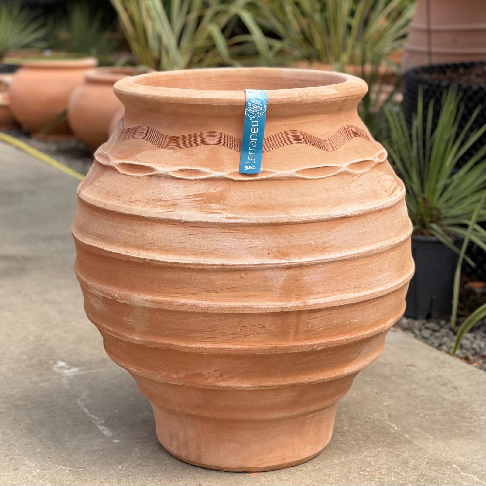 The Terraneo Koronios Terracotta Pots are handmade from superior-quality terracotta. The really top-notch stuff from the Peloponnese where they’ve been making pots for aeons (so they know their stuff).