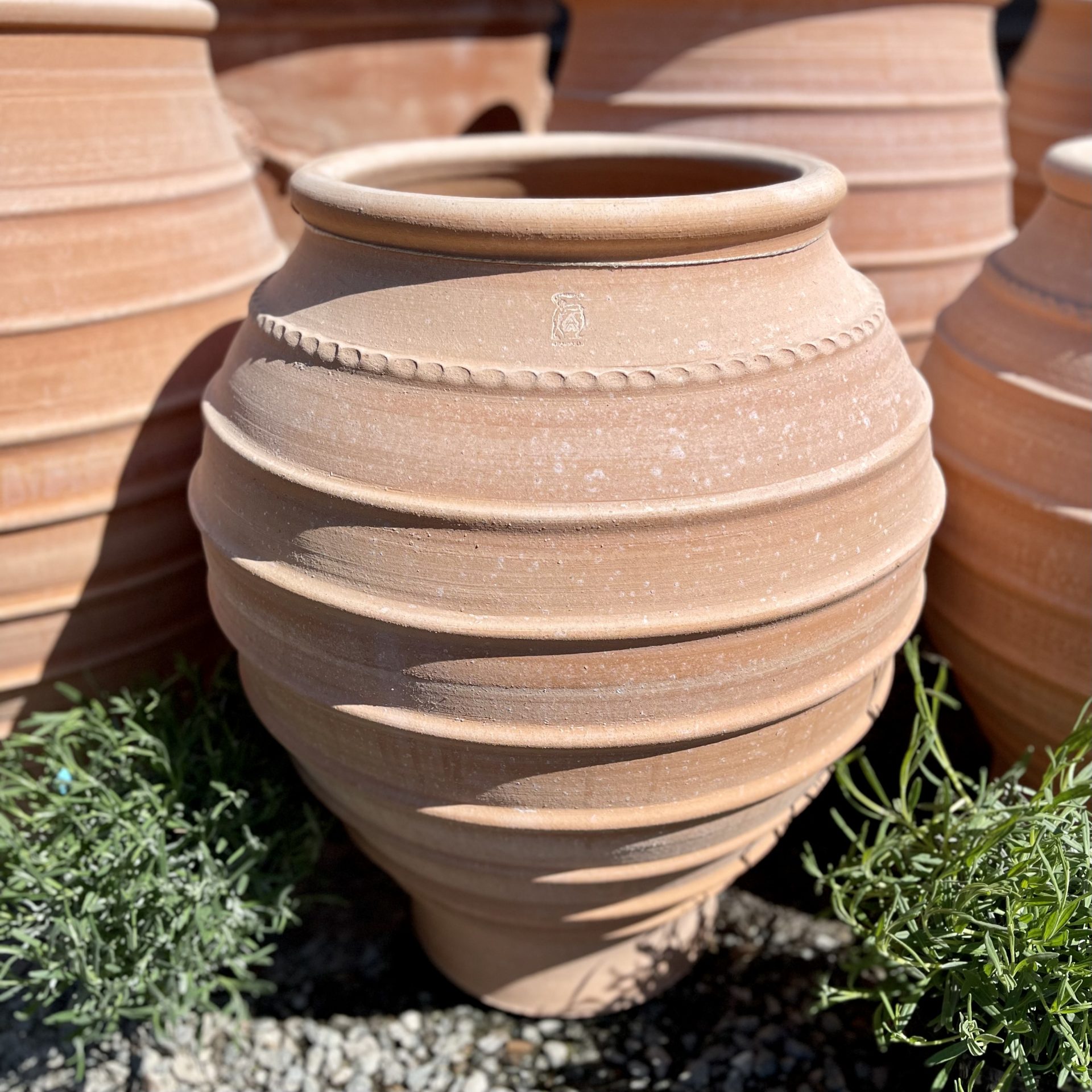These frost proof pots make a fabulous, larger than life statement in any garden. All measurements are approximate as hand-made pieces may vary slightly.