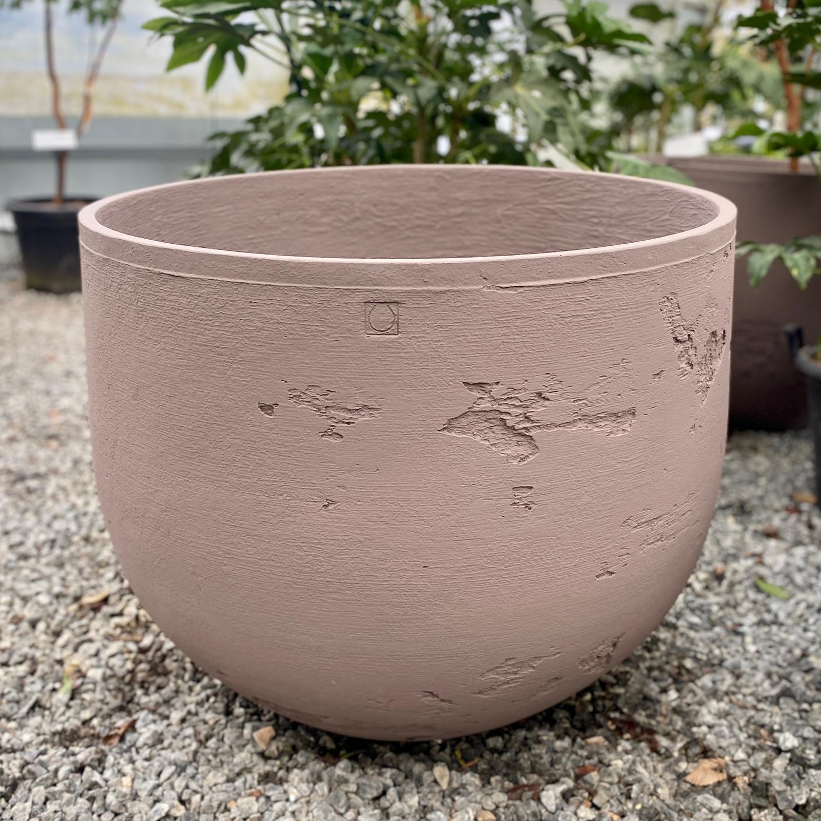 Available in Rust with a heavy drag for maximum impact or a softer Taupe with medium drag finish, each surface is worked by hand. Each resulting in a pot that gathers character over time, rather than losing it.