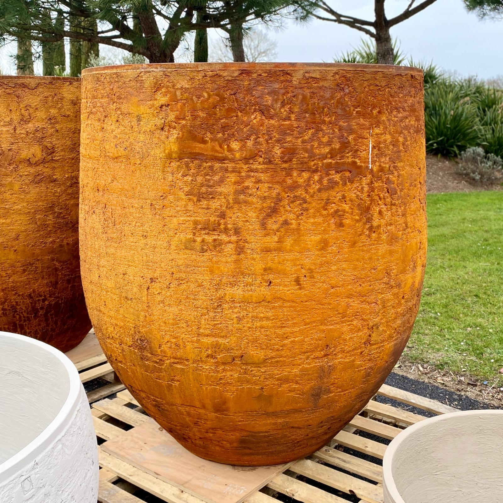 The Caradoc pot can be crafted in any colour or finish, all of which require the expert application of a range of different mixtures and techniques. Often, some very special and additional creative work is undertaken to make these unique; this means each pot takes considerably more time to perfect in contrast to many other company's factory processes. This is a key reason why Torc Pots are perfect for our collection here at Architectural Plants.