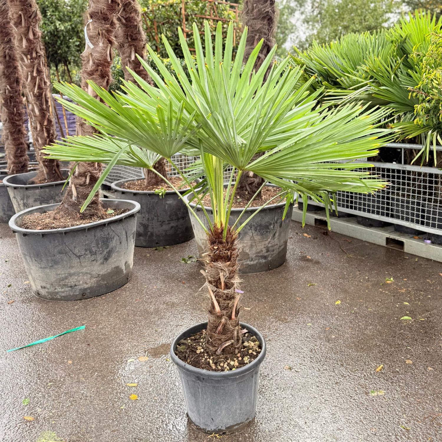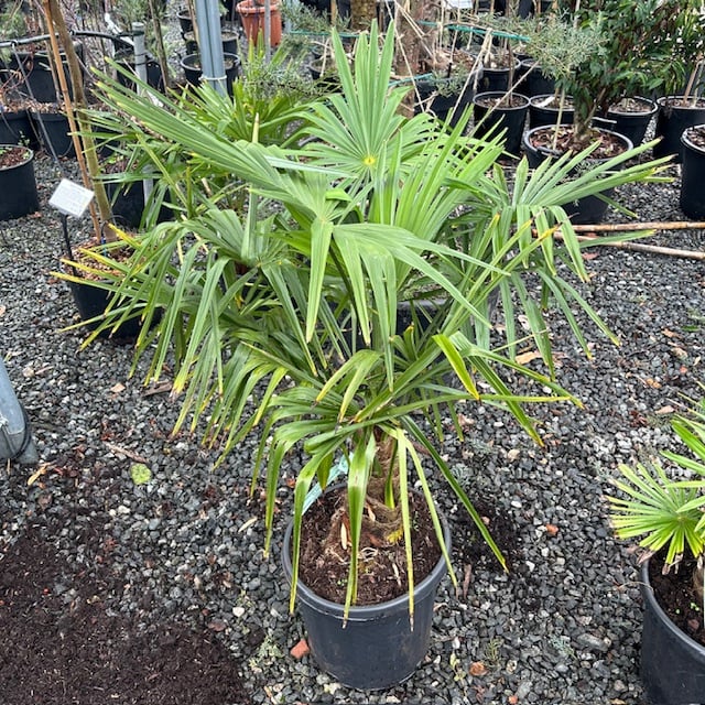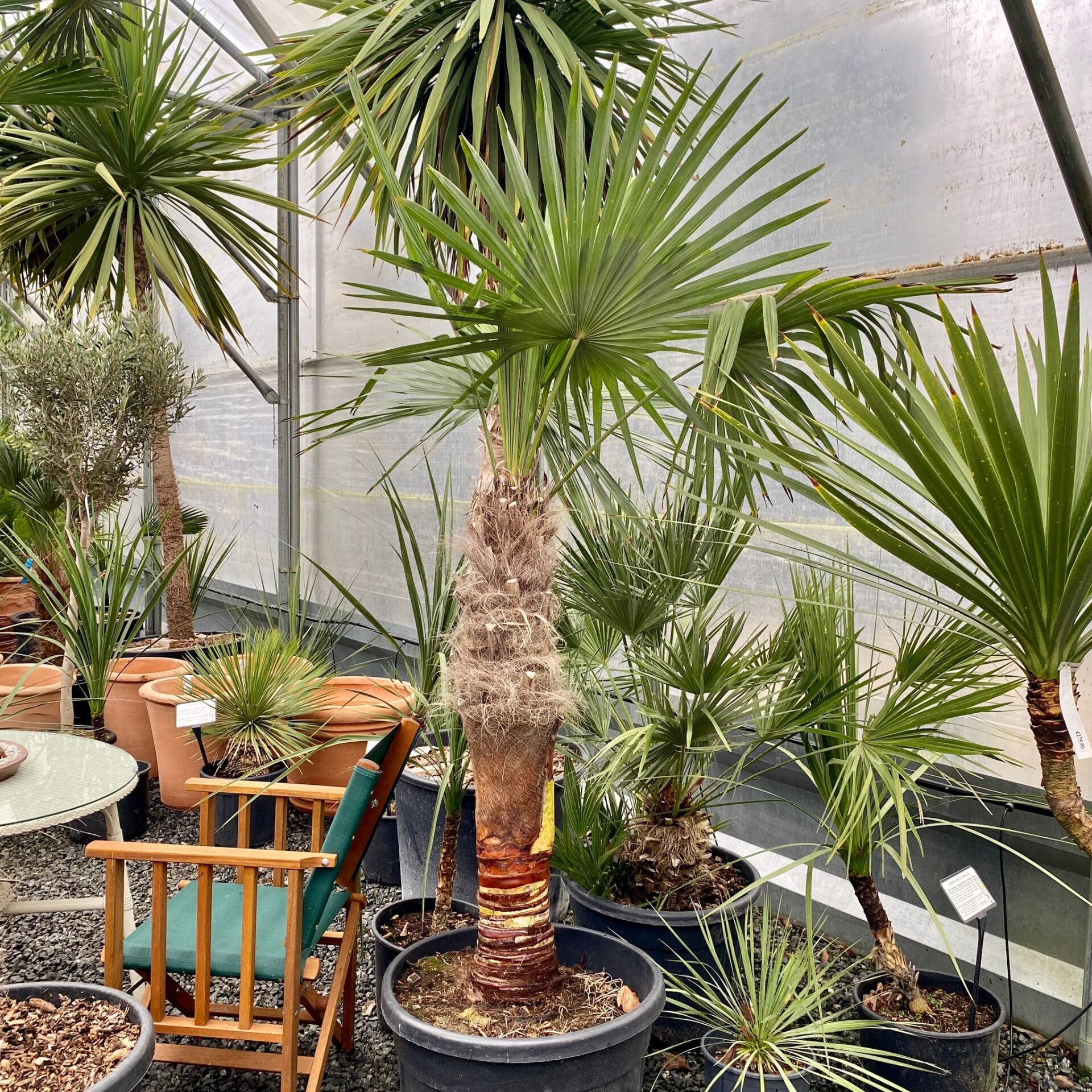 The corner stone of all exotic gardens in Britain. Tough as old boots, grows to 20ft after 30 years. We usually remove the hair on the trunk (if you were wondering).