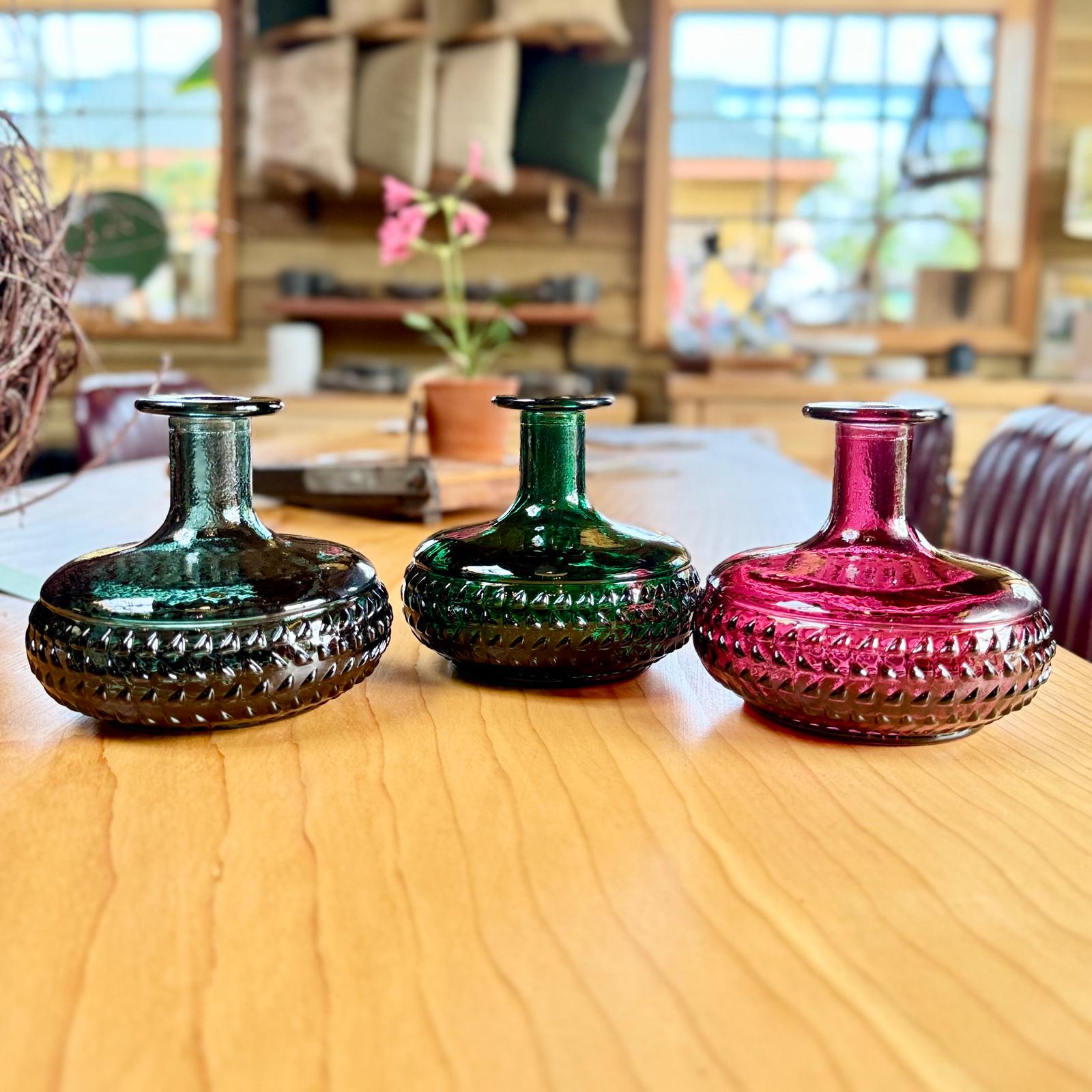 12cm pretty textured shaped vase made from 100% recycled glass. These ornamental vases are great for a few stems, small posies or for reed diffusers.
