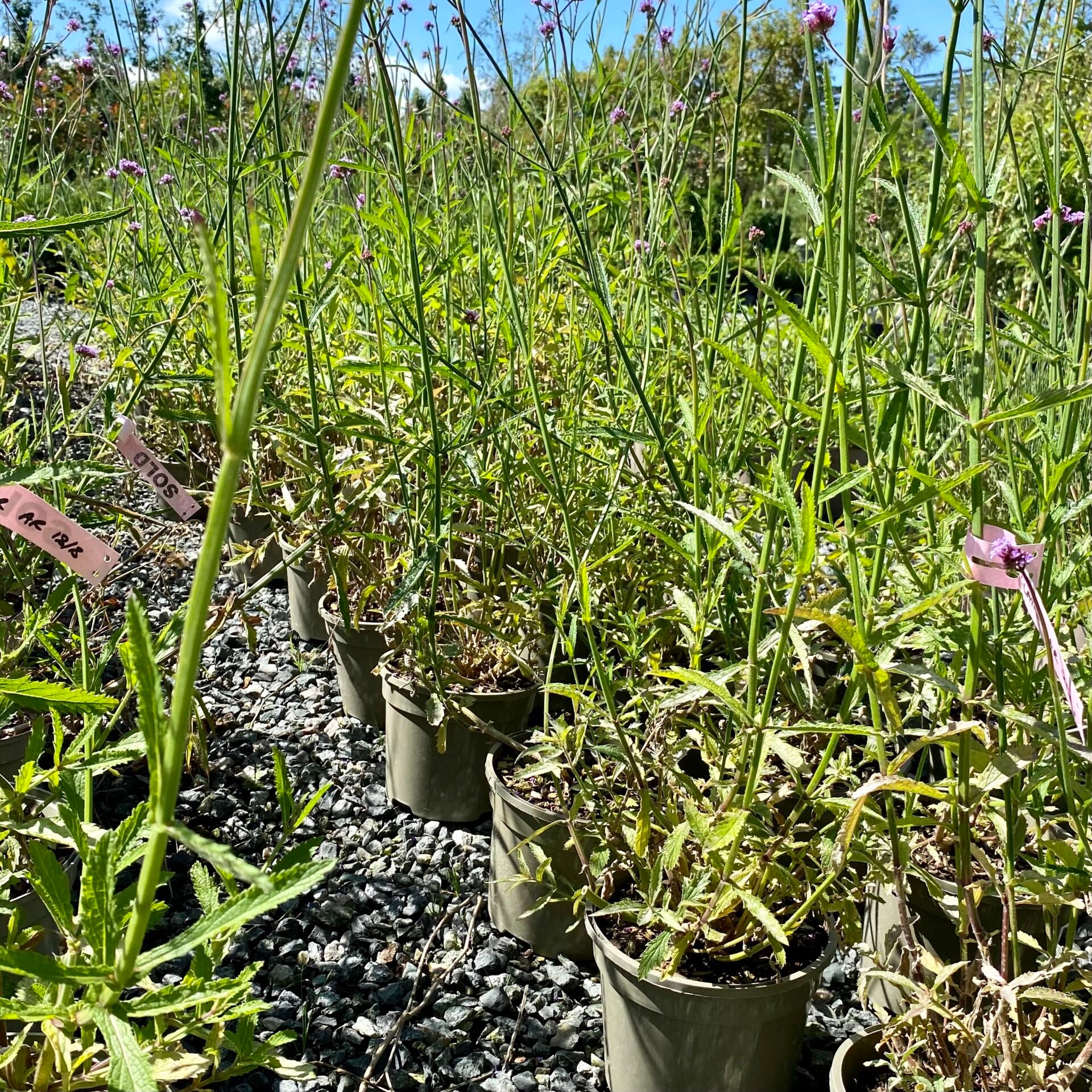 Perennial with tall wiry stems and tubular purple flowers in mid to late summer, which bob gracefully about in the breeze. Enjoys any reasonably well drained soil with lots of sunlight. Will gently seed itself around once established.
