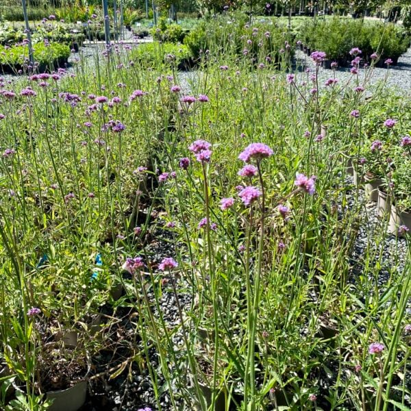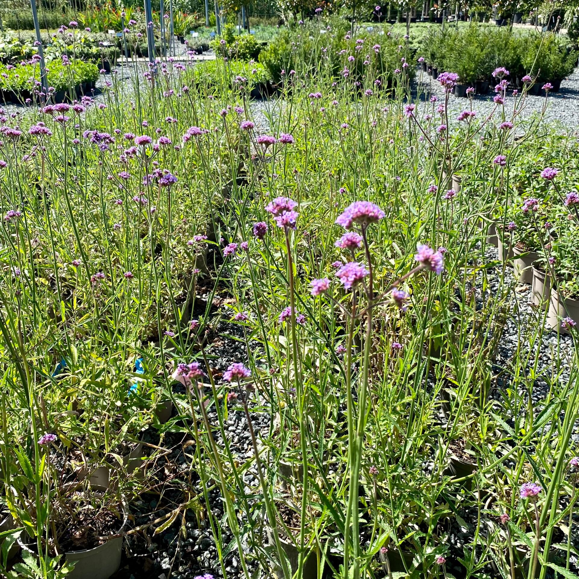 Tall, narrow, sparsely-leafed stems, flattened heads of bright lavender-purple flowers. This is a short-lived perennial and may be damaged by winter frosts. To 3ft.