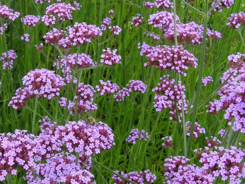 Tall, narrow, sparsely-leafed stems, flattened heads of bright lavender-purple flowers. This is a short-lived perennial and may be damaged by winter frosts. To 3ft.