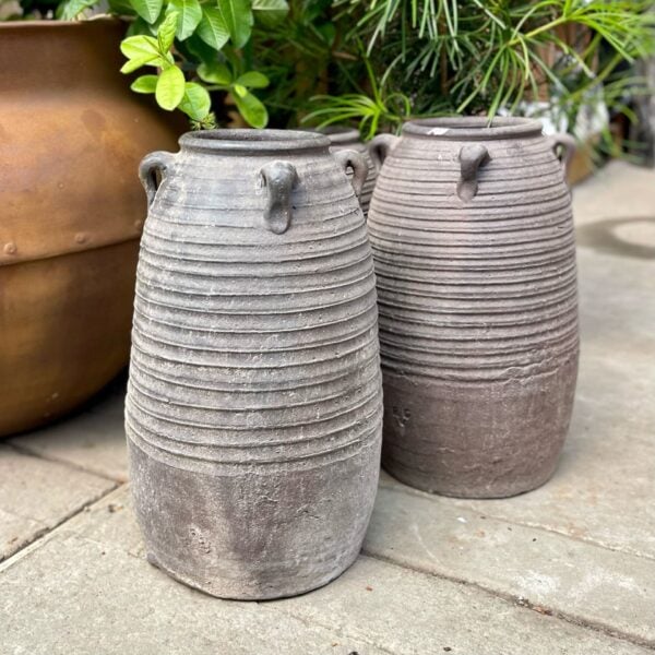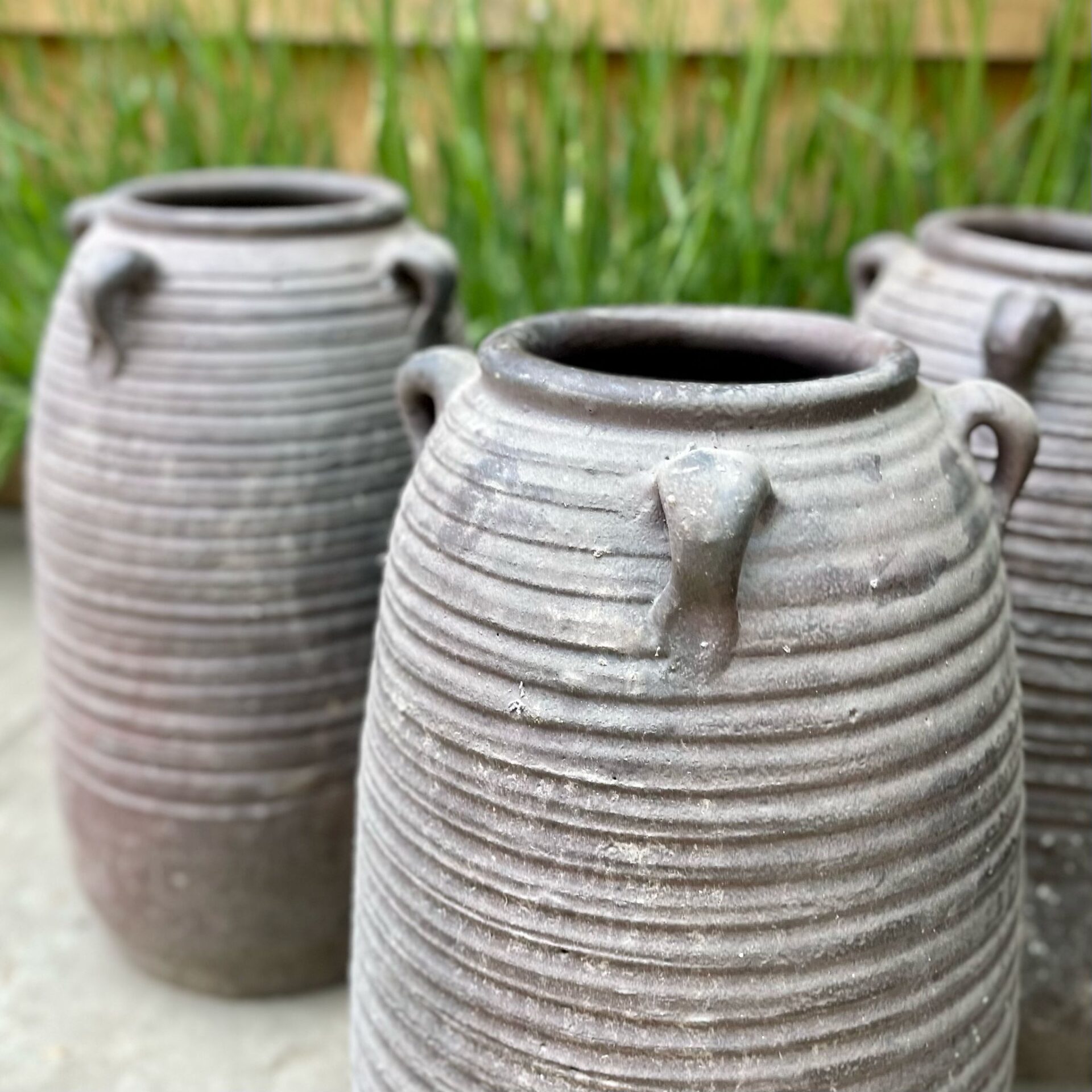 These Vinatge Jars are great used as lost and found shapes around your garden or used as little vases and homes for houseplants, placed on a shelf amongst other curious objects or even storage for your desk or bathroom. They come in three different styles and each jar is uniquely textured.