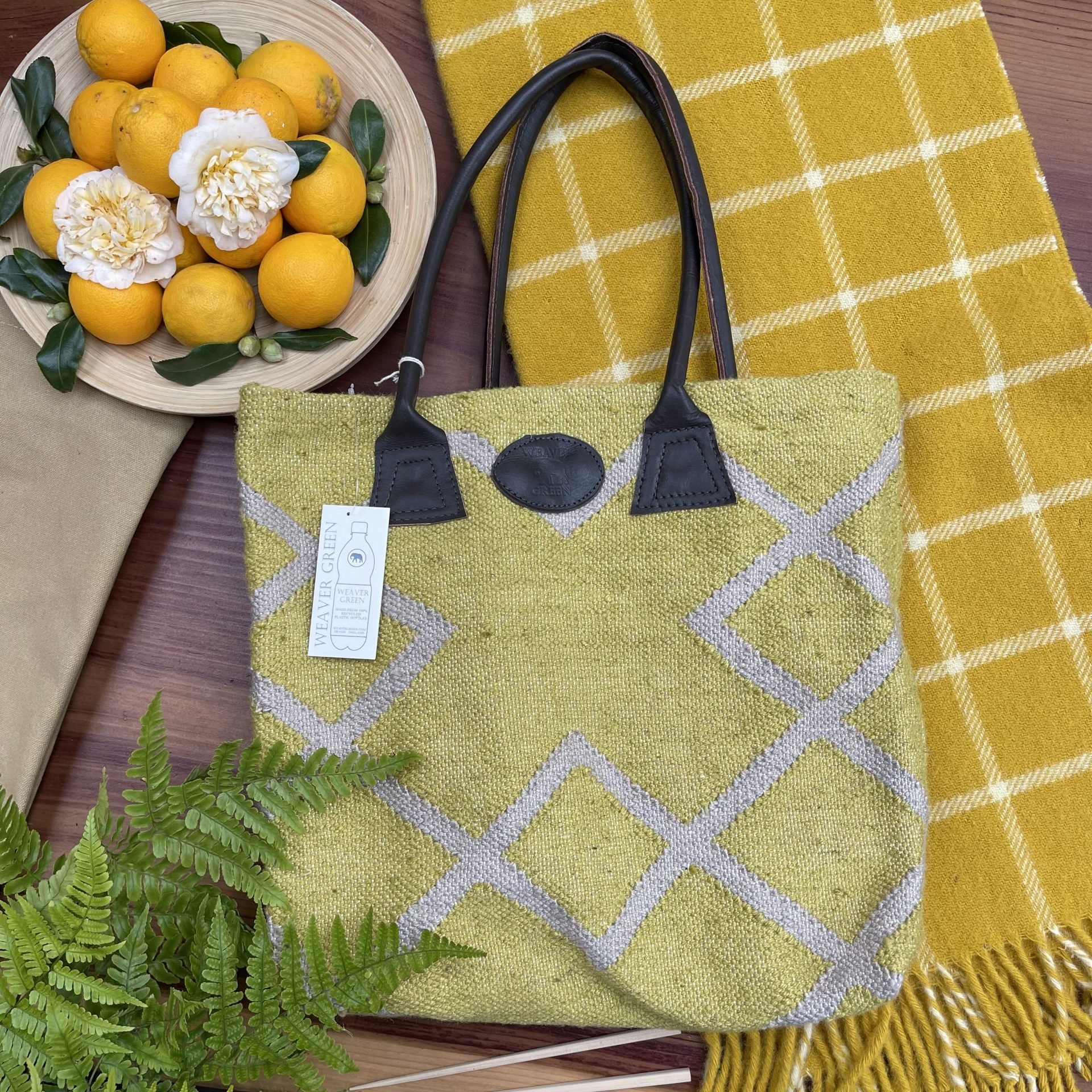 Gorgeous diamond tote bags which have the look and feel of natural wool but are made from recycled plastic bottles.