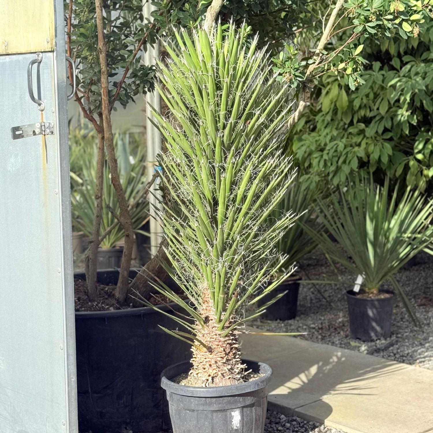 Have we got the name right? Is it a Joshua tree? Is it a mexican dagger? Does it matter? Not really. They seem hardy - theres an old one at Wisley and an even older one growing in Bury St Edmunds but they're not exactly common in these here parts. !0ft after 40 years? Huge white flower spikes in summer.