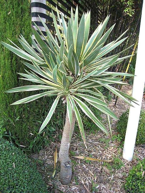 As Yucca gloriosa but with yellow and green striped leaves. Very frost hardy but much less bulky. Could reach 4ft tall by 3ft across, less likely to form a ‘thicket’.