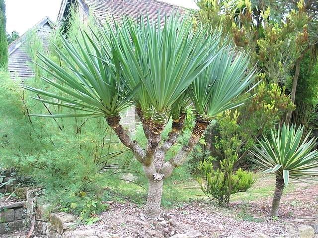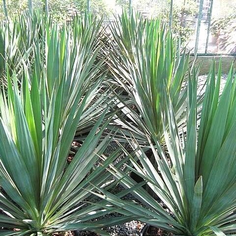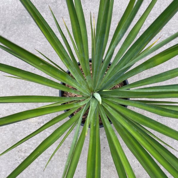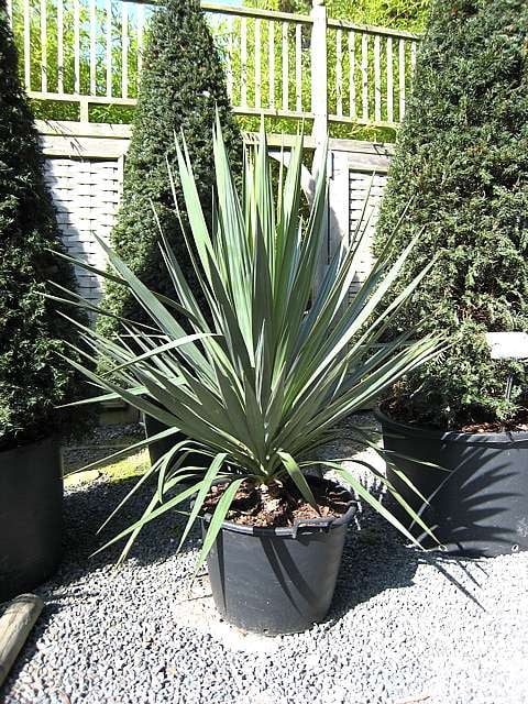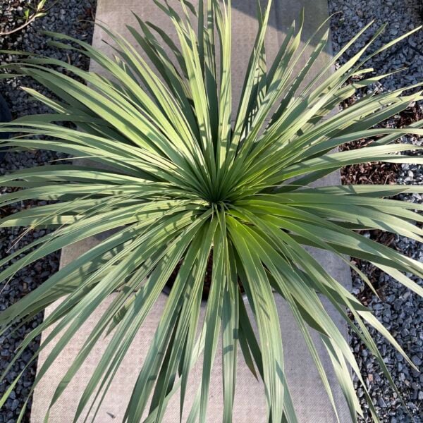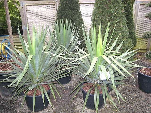Another classic Victorian favourite. Trunk forming, but with graceful recurved (bending) leaves. Huge white flower spikes, as with all the Yuccas. To 5ft x 3ft across. Please contact us for other stock availability and sizes.