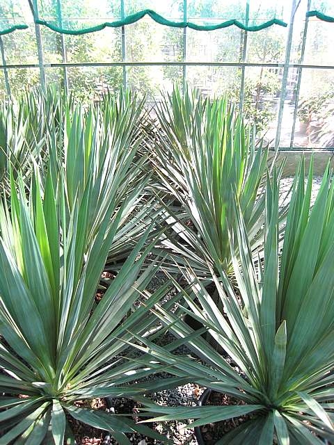 An elegant favourite thought to be a form of Yucca gloriosa from the Carolinas and often wrongly named Yucca gloriosa. The outer, older leaves bend elegantly under their own weight forming a top like a smaller but butcher (more butch, that is) Cordyline. It forms a trunk and has all the normal pitfalls and benefits of all the yuccas but this plant is particularly easy to please - being happy in shade and quite wet clay soil. Removing old leaves is best done by tearing. This might require a pair of gloves and leaves a nice smooth trunk. Gertrude Jekyll was a prominent garden designer around the turn of the century working with the much younger architect Edwin Lutyens in his numerous Surrey houses and gardens. She is sometimes credited with inventing the herbaceous border but - rather surprisingly - she was devoted to using these same Yucca recurvas either end of her famous borders. We propagate these in our lab by micropropagation as seed is unavailable and division is too slow.